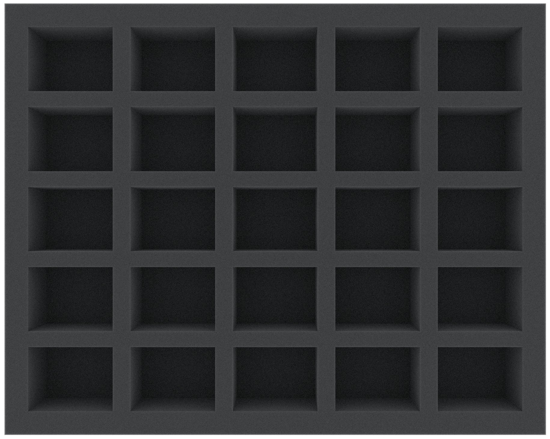 Ce plateau en mousse est divisé en 25 grands compartiments. Il est idéal pour les figurines de grande taille de 28 mm avec des bases rondes ou carrées jusqu'à 40 mm. Peut également être utilisé pour le matériel de jeu, comme les jetons ou les dés.