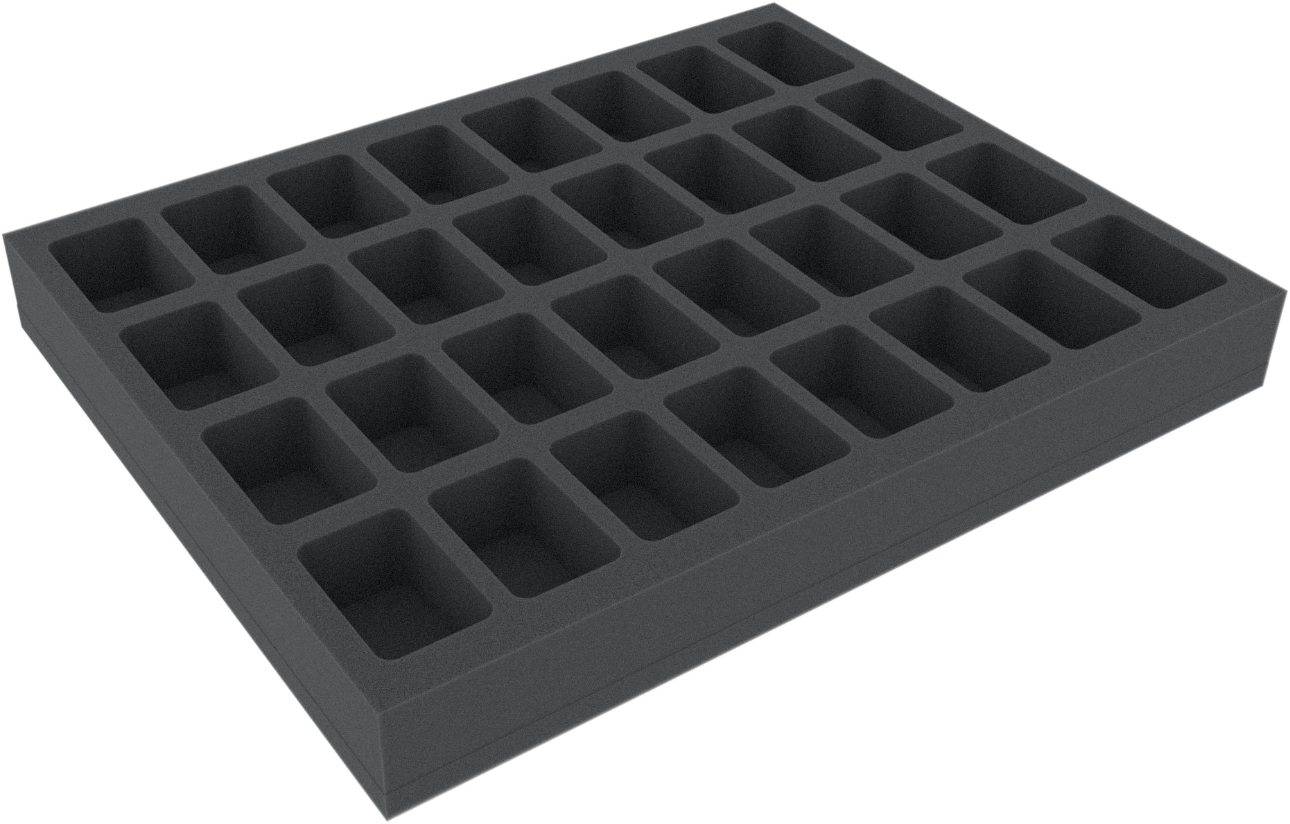 Plateau en mousse Feldherr 40 mm Full-Size avec 32 compartiments. Les compartiments de coupe universelle offrent une protection optimale pour les différentes miniatures et accessoires.