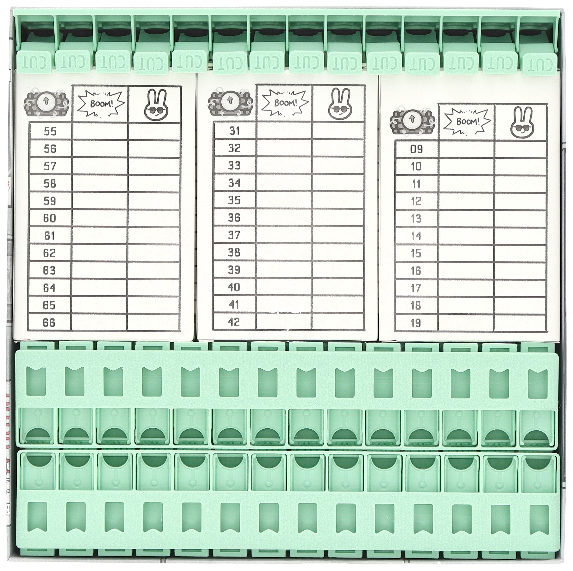 - L'organisateur en plastique robuste s'insère parfaitement dans la boîte du jeu de base Bomb Busters (dimensions de l'organisateur : 262 x 262 x 48 mm).