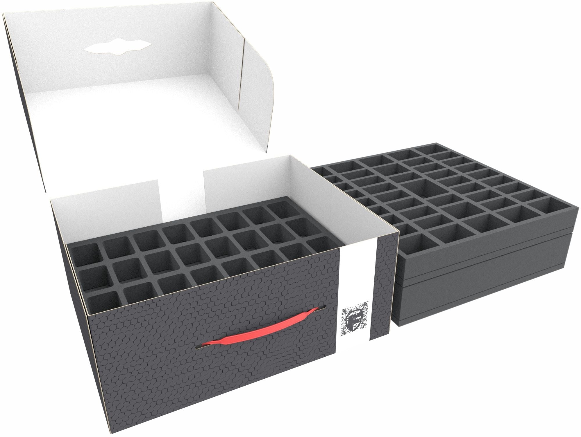- 1 plateau en mousse avec 63 compartiments pour figurines (BXMEWM060BO)