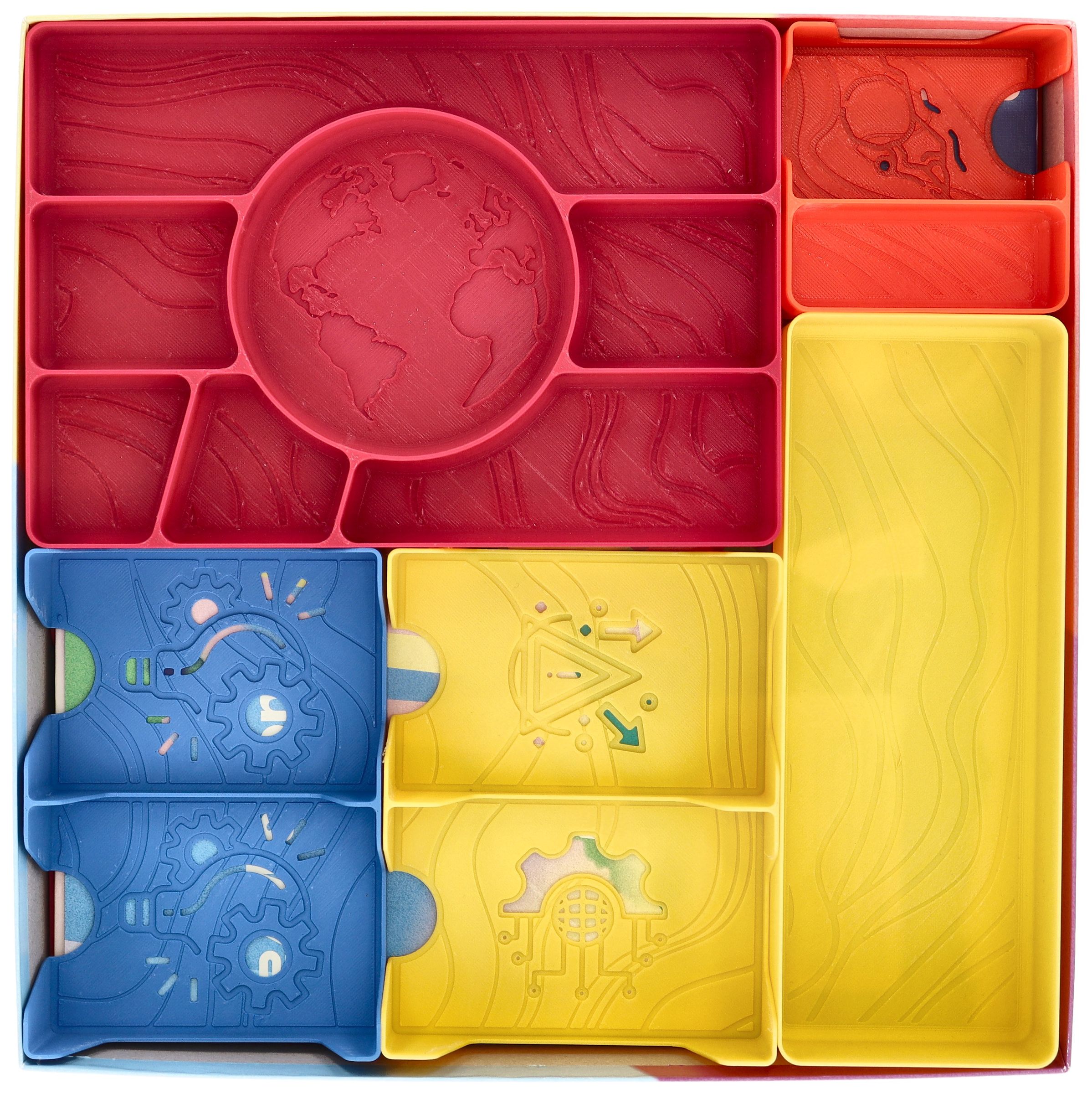 - Des compartiments personnalisés avec des symboles assortis aux composants facilitent le tri des jetons et accélèrent la mise en place du jeu.