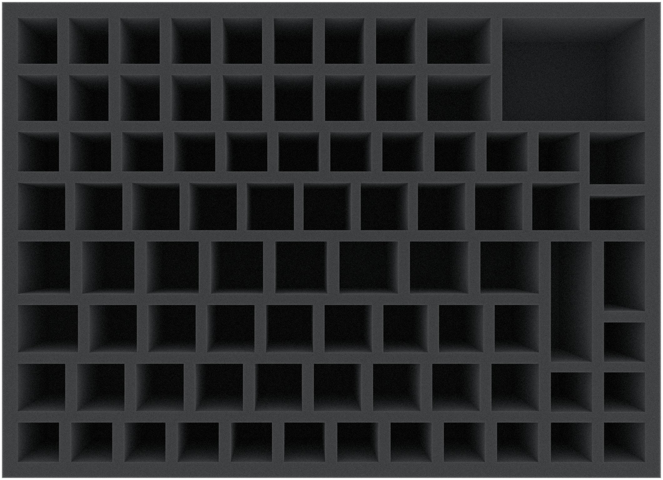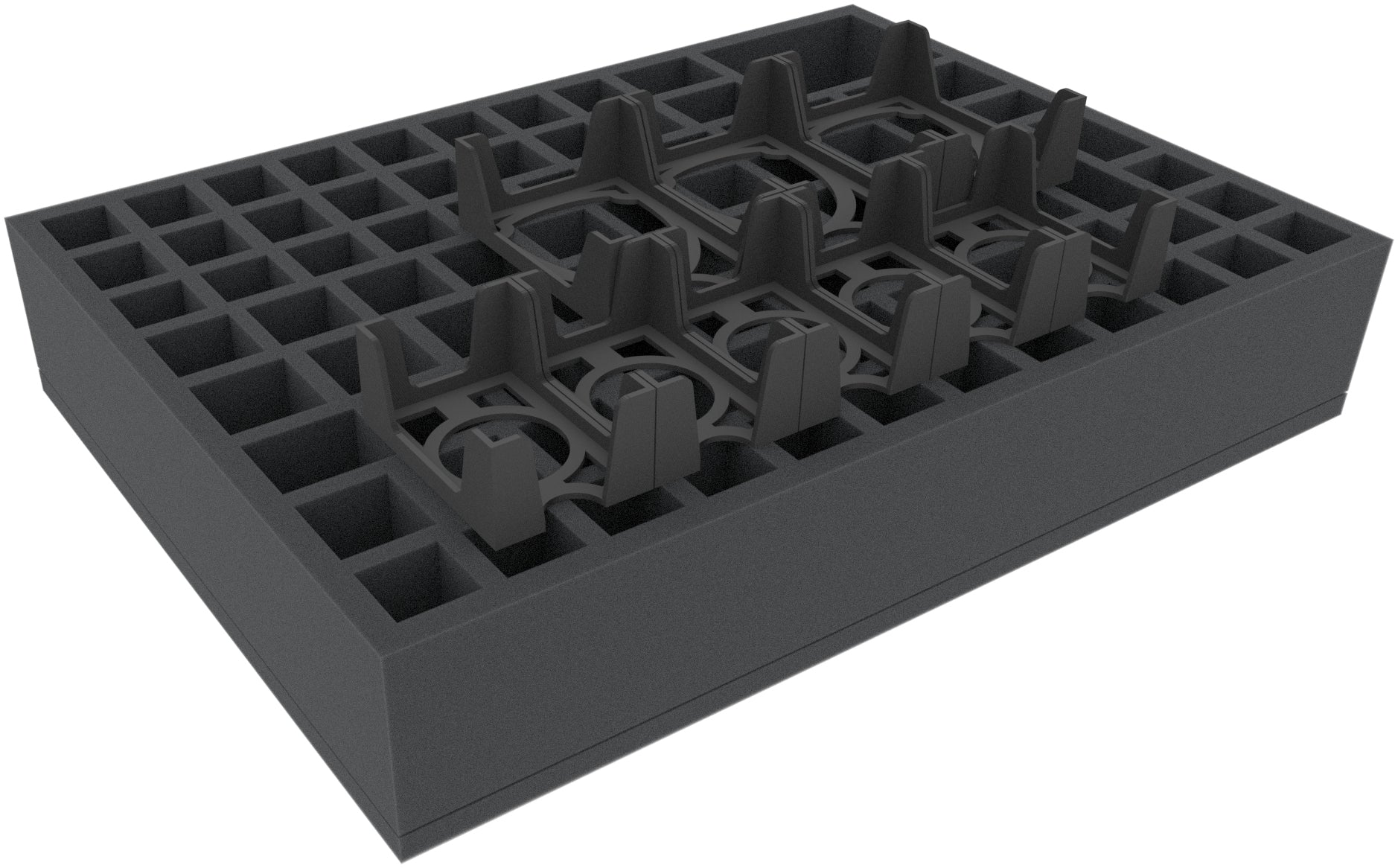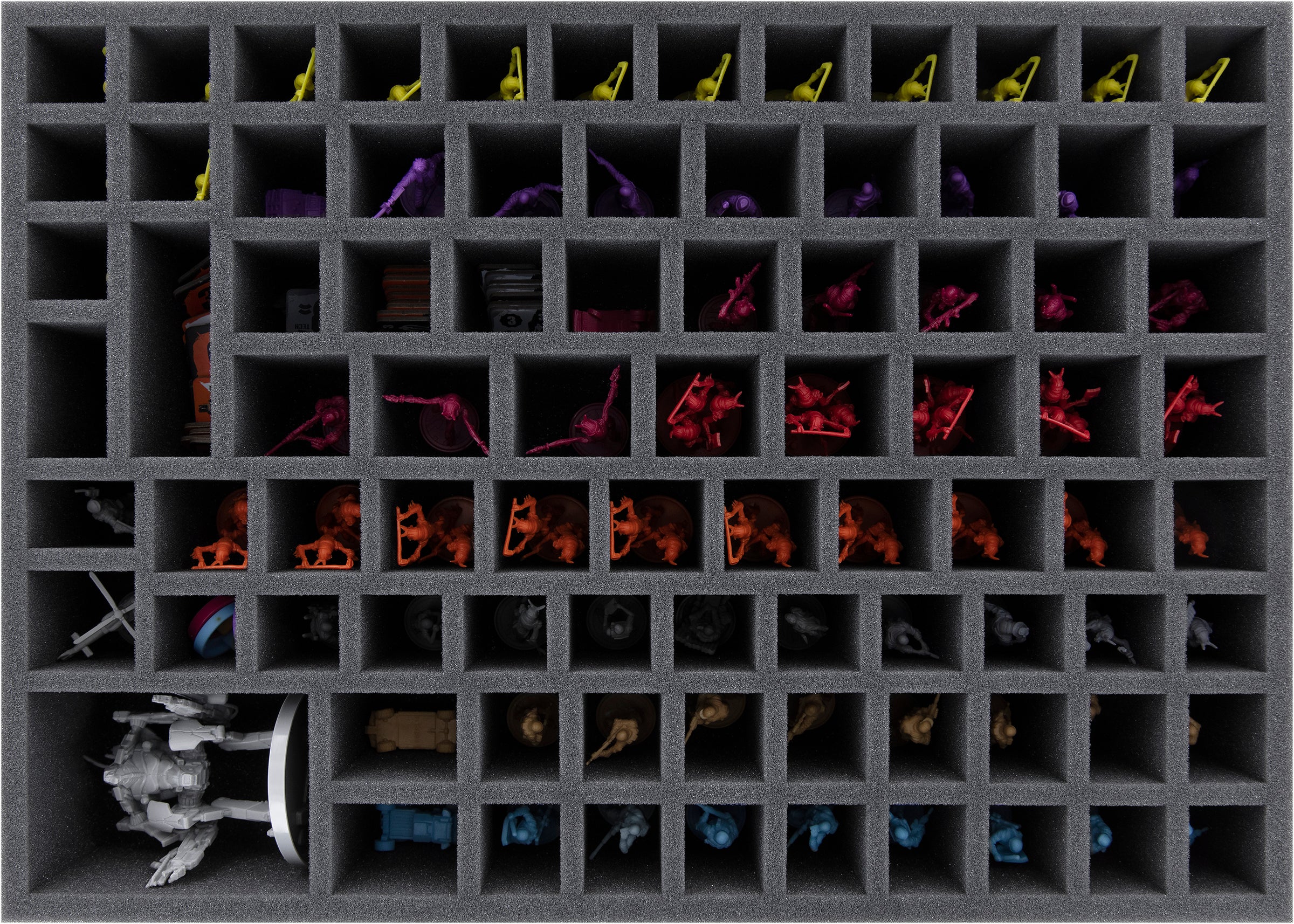 - 1 mousses de rangement avec 85 compartiments pour figurines et du matériel de jeu de petite taille comme les tuiles Mech, les tuiles de base de faction, les tuiles d'avant-poste, les traceurs de statistiques et les anneaux de faction.