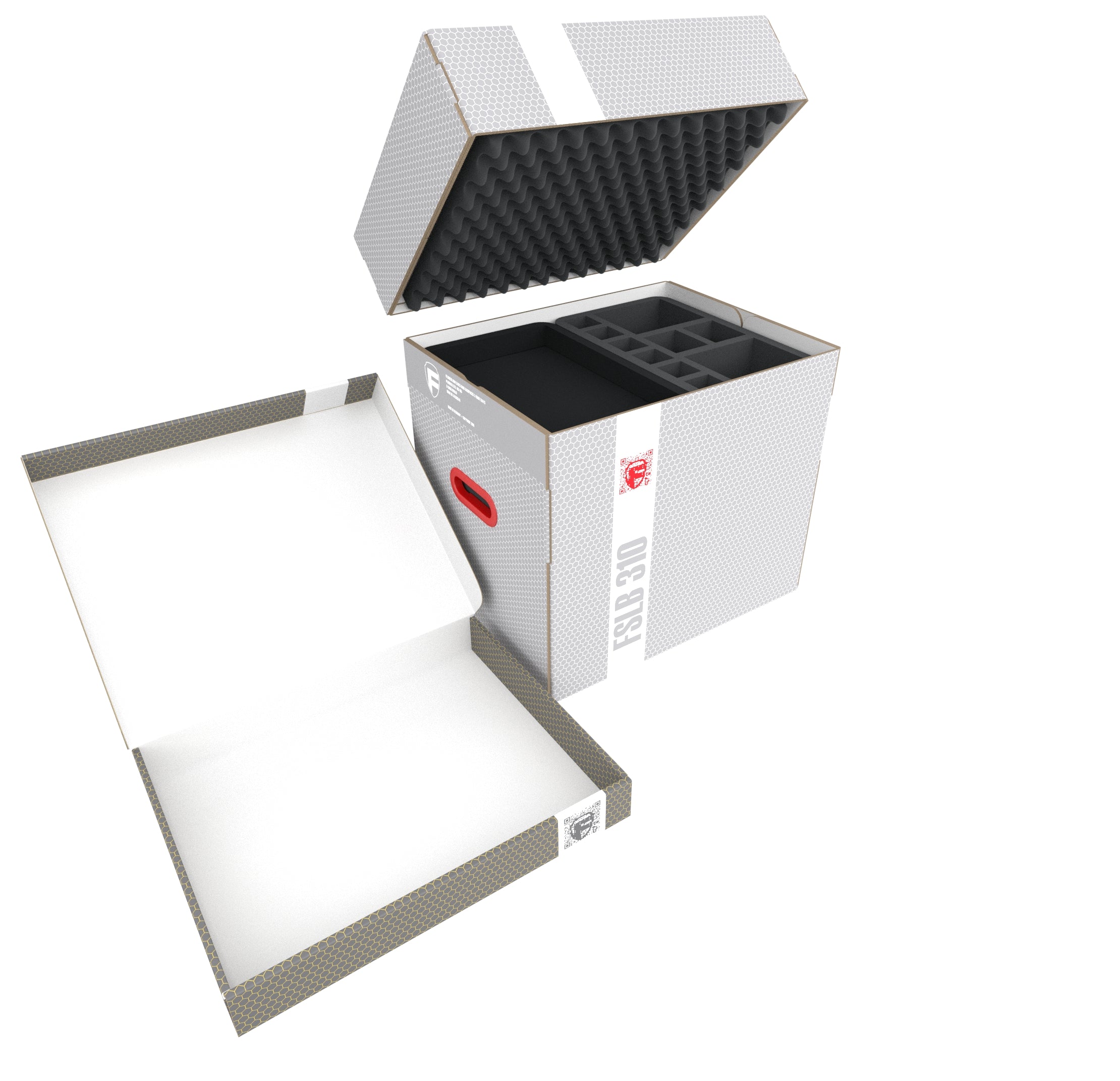 La boîte à cartes TCHS105 et les mousses de rangement s'adaptent parfaitement à la grande Storage Box FSLB310. Les Feldherr Storage Boxes FSLB310 et FSLB040 sont fabriquées en carton couché à simple paroi.Cela signifie qu'ils sont non seulement agréablement légers, mais aussi particulièrement résistants à la déchirure et stables.Le couvercle amovible du FSLB310 protège de manière fiable le contenu de la poussière et d'autres influences extérieures.Le FSLB310 peut être facilement transporté grâce aux deux poignées latérales renforcées en plastique.