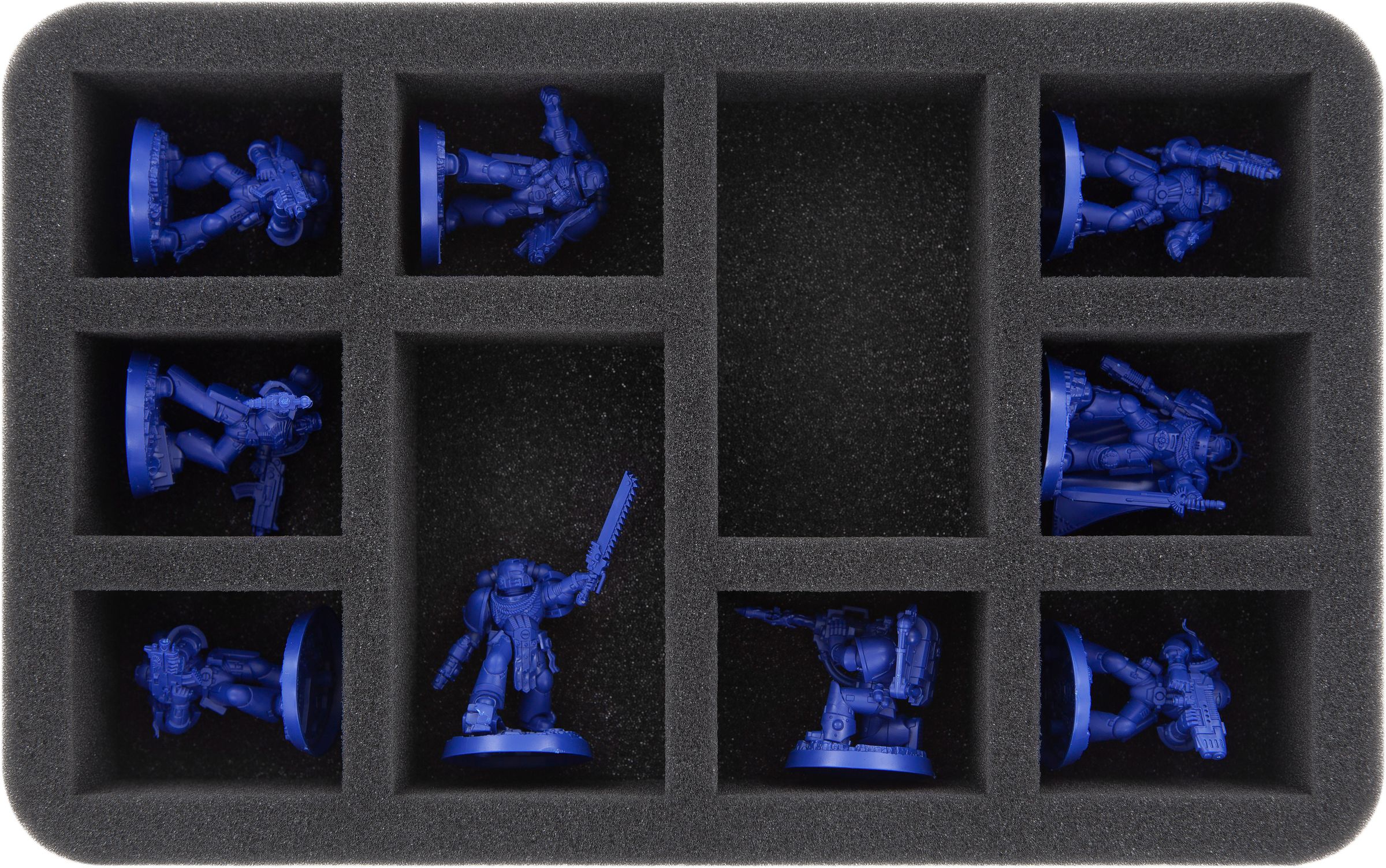 Pour les autres frères de votre troupe, comme le capitaine, le lieutenant, l'aumônier et les dix Intercesseurs d'Assaut, il y a la bonne place pour chaque miniature sur les deux inserts en mousse à dix compartiments chacun (HSLM050BO).