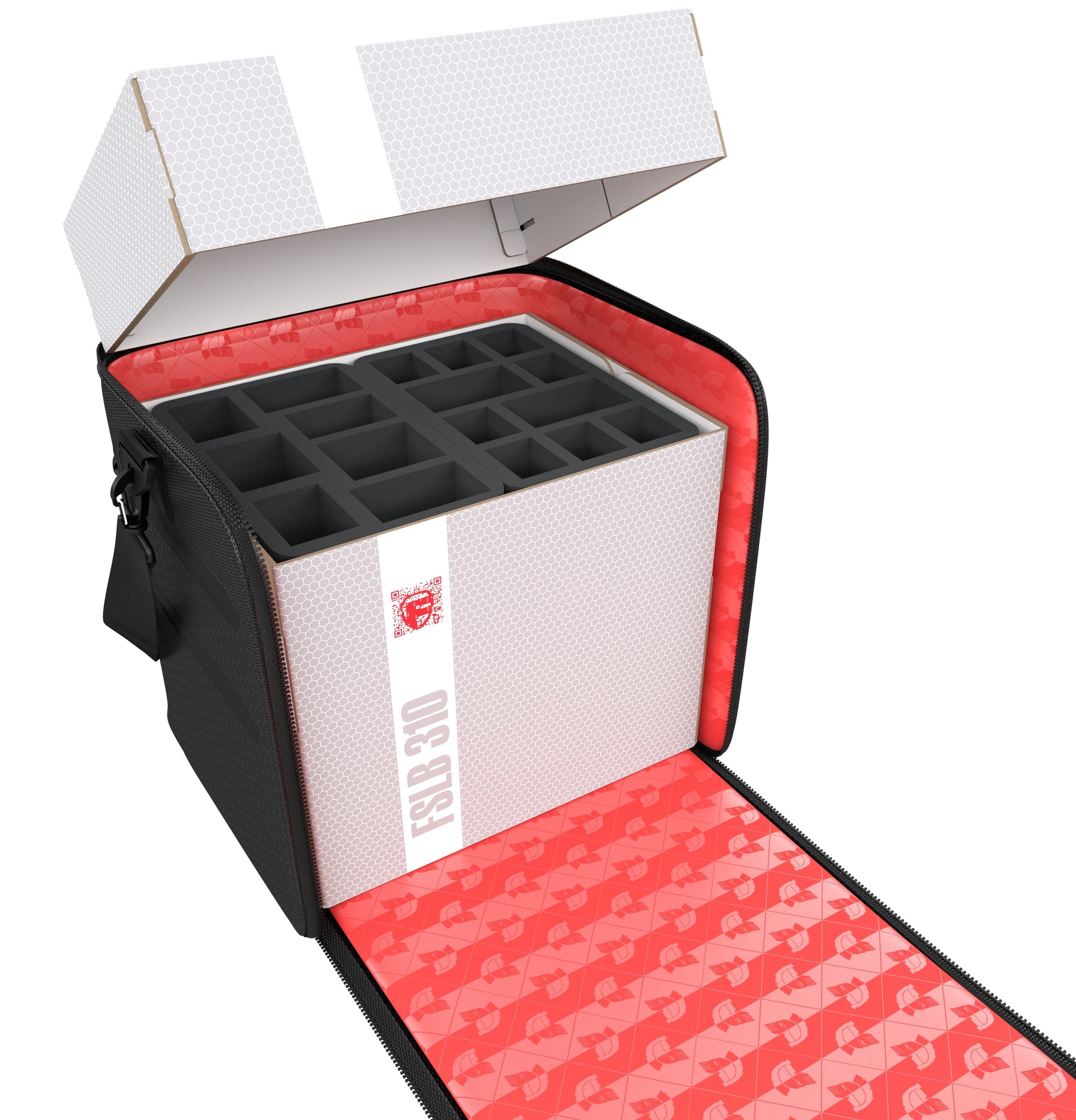 Le Storage Box FSLB310 est fabriqué en carton couché à double paroi. Cela le rend non seulement agréablement léger, mais aussi particulièrement résistant à la déchirure et stable. Grâce aux plateaux en mousse assortis, les figurines et le matériel de jeu peuvent être stockés en toute sécurité et à l'abri de la poussière et peut également être transporté sans effort grâce à la poignée de transport en plastique. Pour faciliter le rangement et le retrait des tapis en mousse, un côté de la boîte peut être ouvert complètement. Les plateaux sont insérés par le haut ou Il suffit de le glisser dans la boîte par le côté.