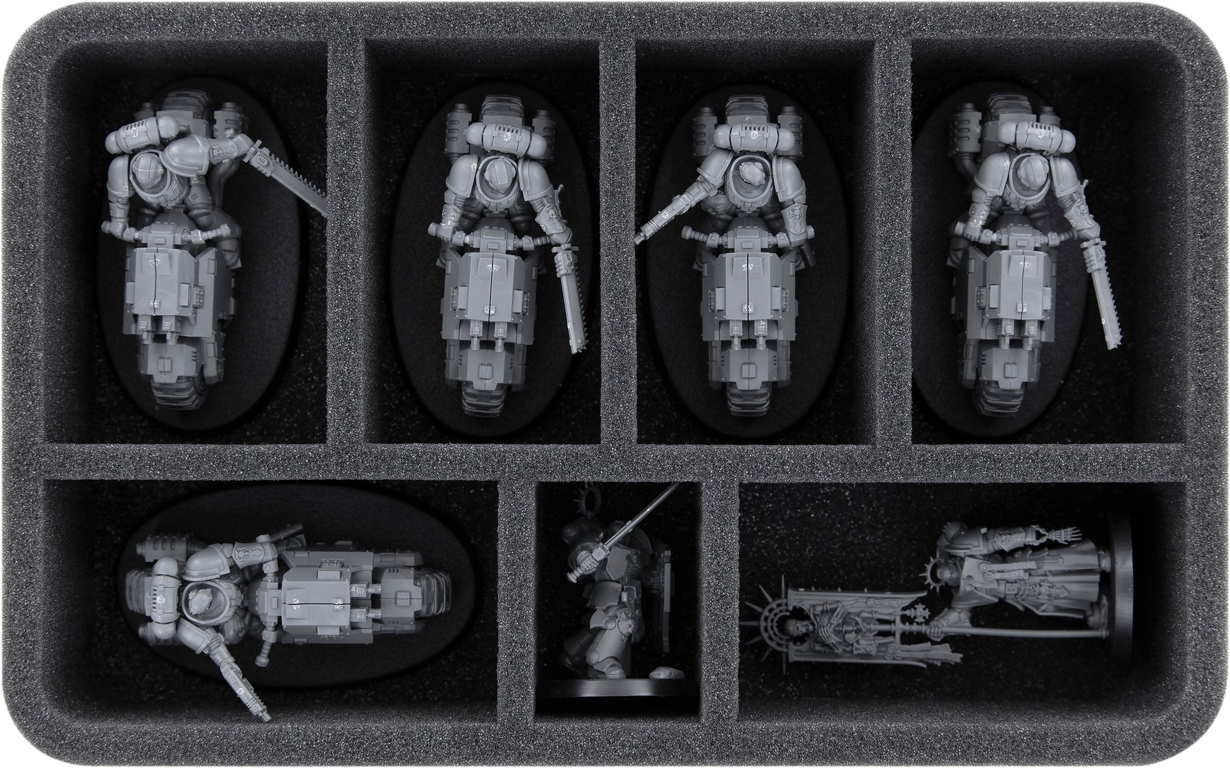 - 2 plateaux en mousse Half-Size avec 7 compartiments chacun pour par exemple Primaris-Eradicator, Primaris Aggressor, Primaris Inceptor (HS060WH44)