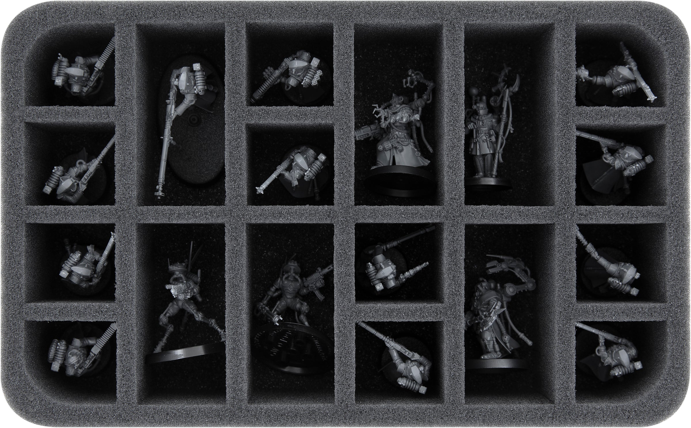 - 1 Half-Size mousses de rangement avec 18 compartiments pour Skitarii Ranger et Vanguard, idéal pour les modèles avec Arquebuse Transuranique et figurines avec des dimensions similaires (HS060A003).