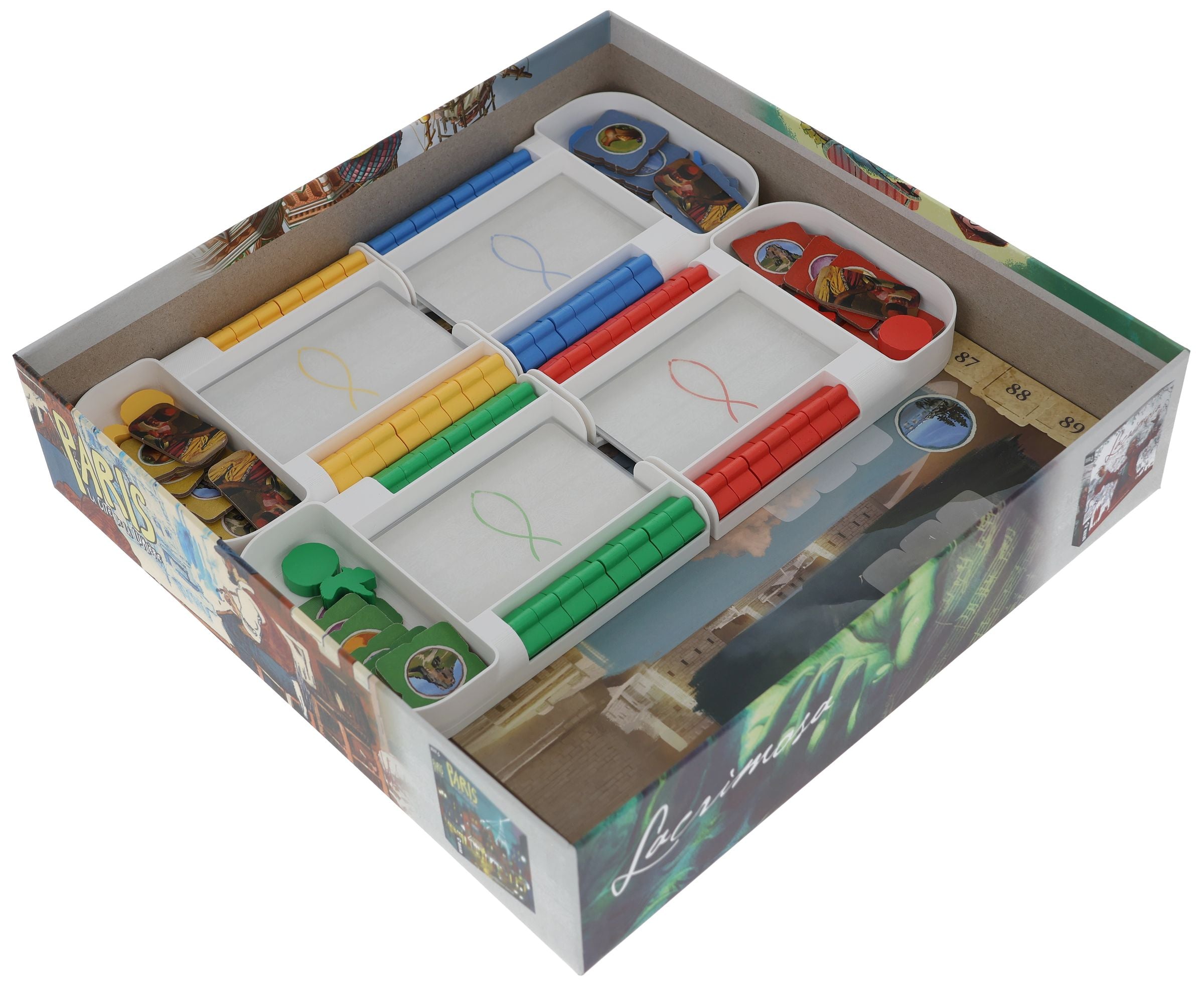 - Cet insert propose des plateaux individuels pour chaque joueur, qui permettent de classer clairement tous les éléments du jeu par couleur et d'accélérer considérablement le processus de mise en place et de nettoyage.