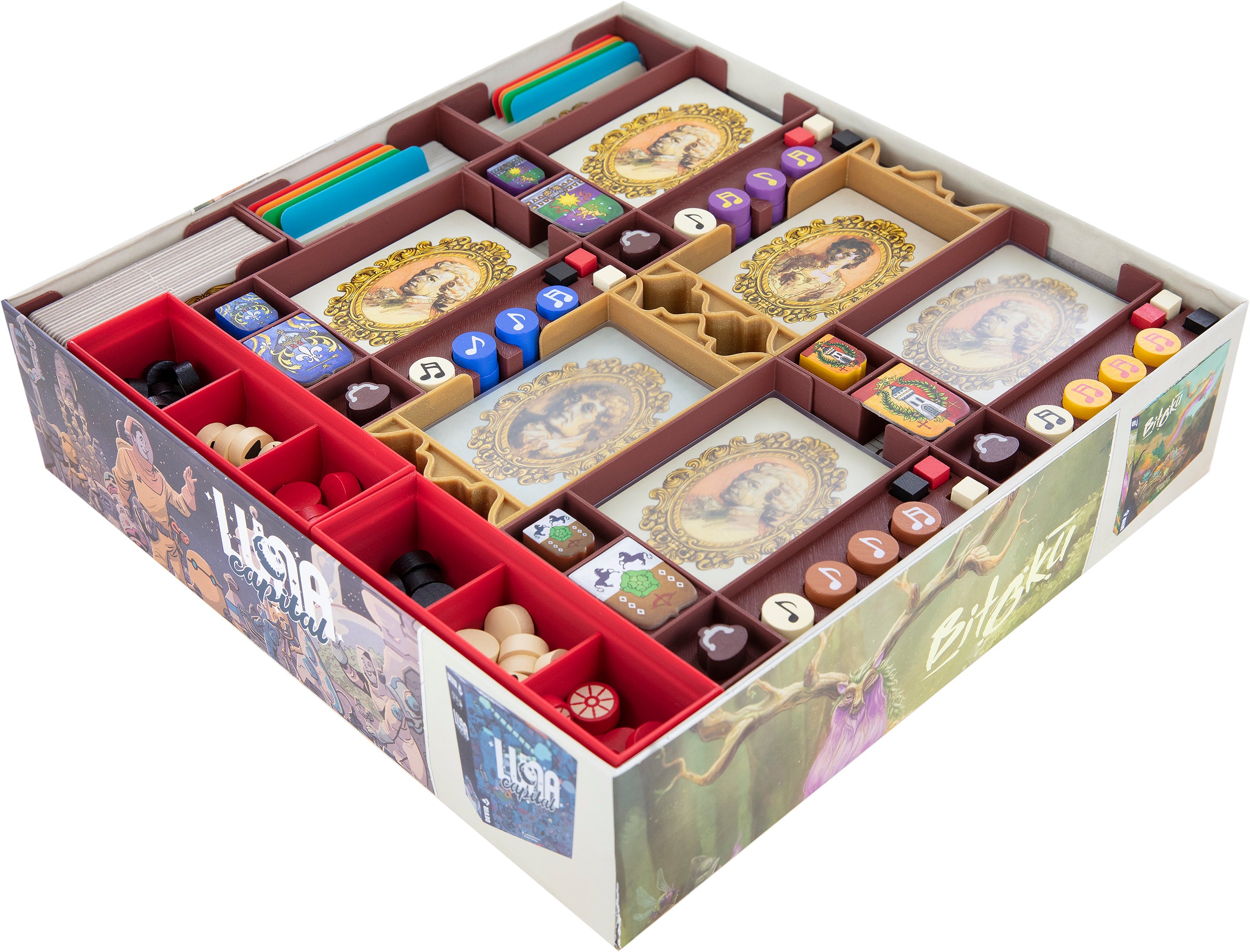 Différents inserts en plastique permettent d'organiser votre matériel de jeu comme un chef d'orchestre qui dirige son orchestre à travers les hauts et les bas de la partition. Chaque élément de jeu reçoit une place appropriée, et votre boîte du jeu reçoit une structure harmonieuse et de l'ordre.