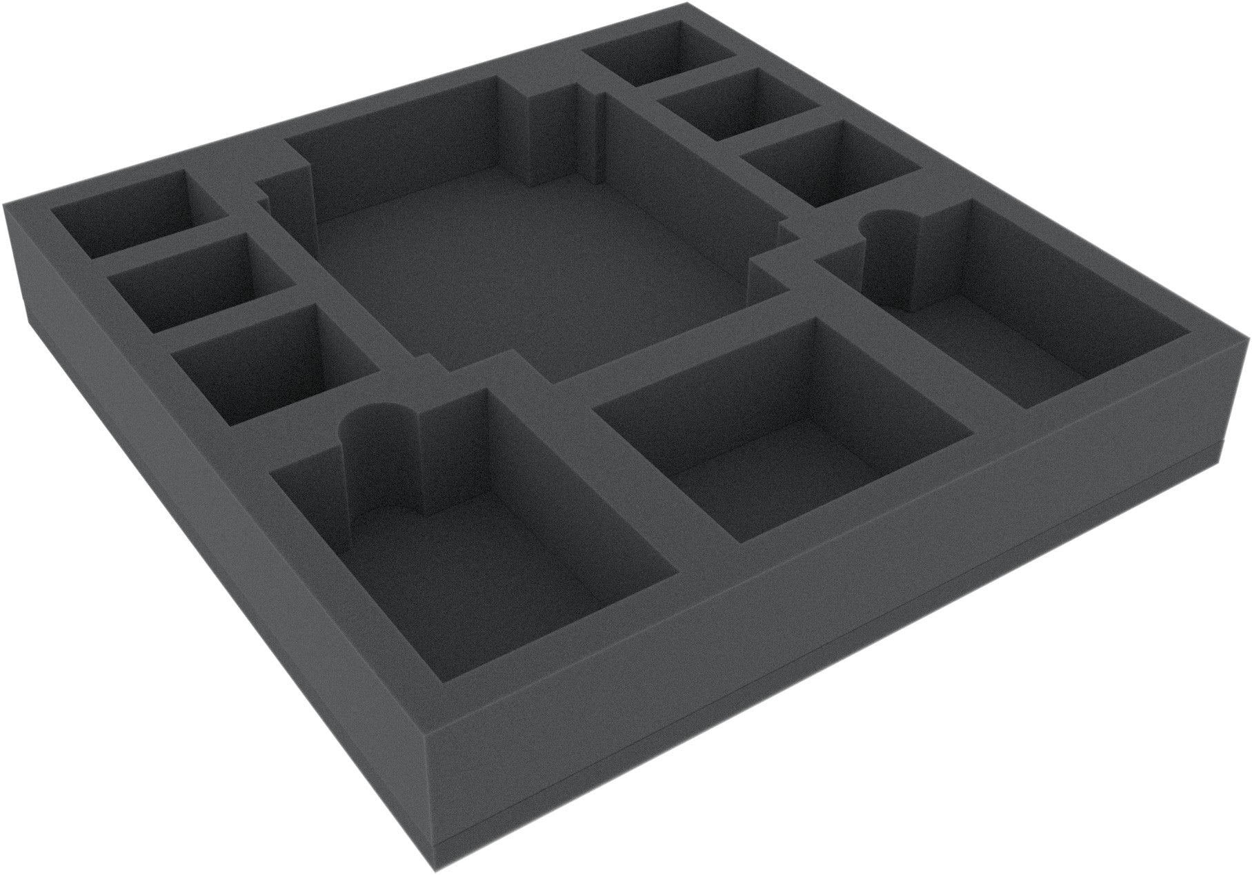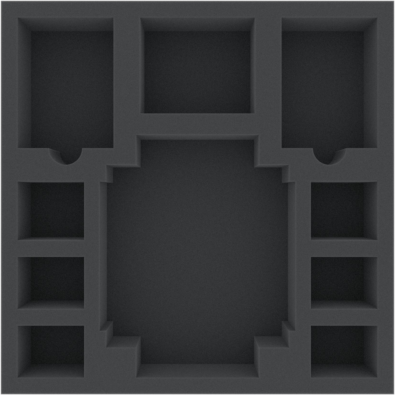 Plateau en mousse à 10 compartiments spécialement conçu pour Masmorra : Coffret de jeu de société Donjons d'Arcadie. Les 10 compartiments différents sont parfaits pour les héros de Masmorra et les cartes à manches.