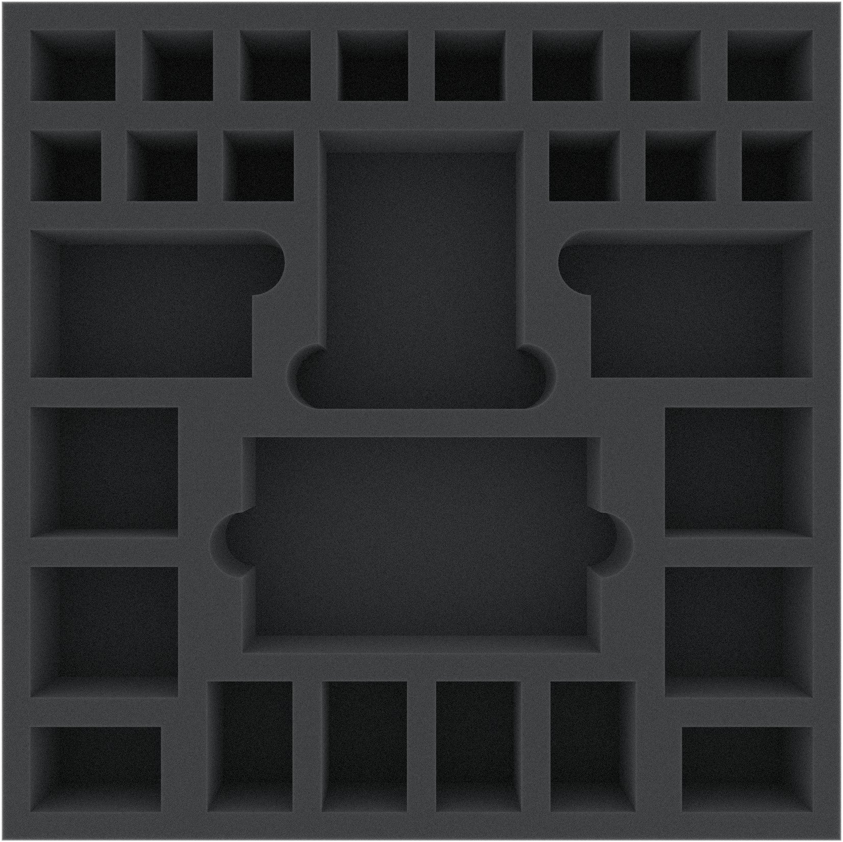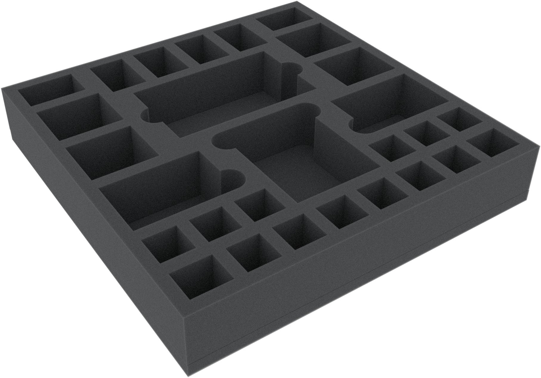 Plateau en mousse avec 28 compartiments spécialement conçu pour Arcadia Quest : Animaux domestiques. Les 28 compartiments différents sont parfaits pour les miniatures et les cartes en pochettes. Le plateau en mousse s'adapte parfaitement dans la boîte de jeu de société d'origine ou dans la boîte Feldherr LBBG.