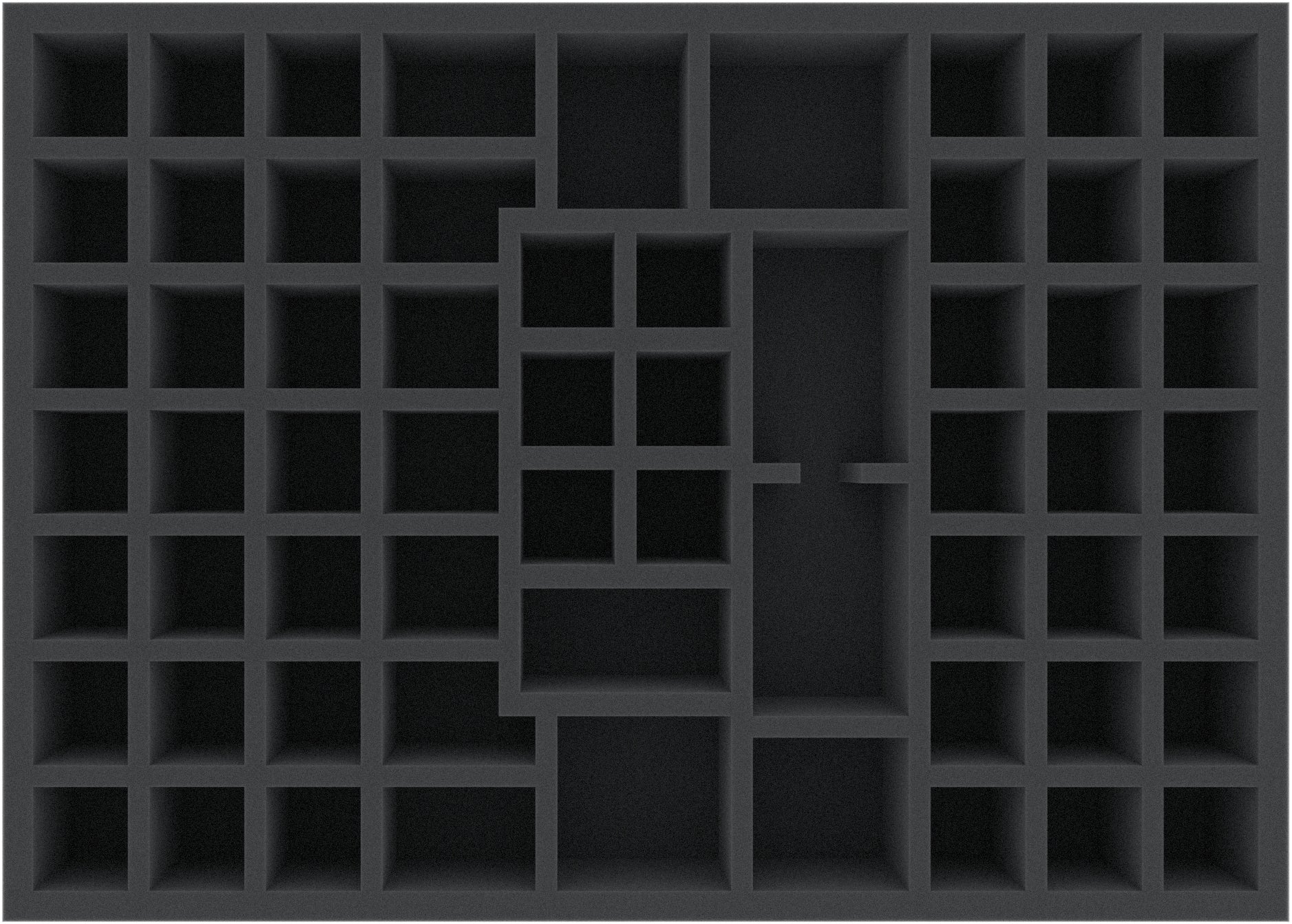 Ce plateau en mousse est divisé en 62 compartiments de différentes tailles. Il est particulièrement adapté au stockage sécurisé des figurines et du matériel de jeu dans les boîtes de jeux de société.
