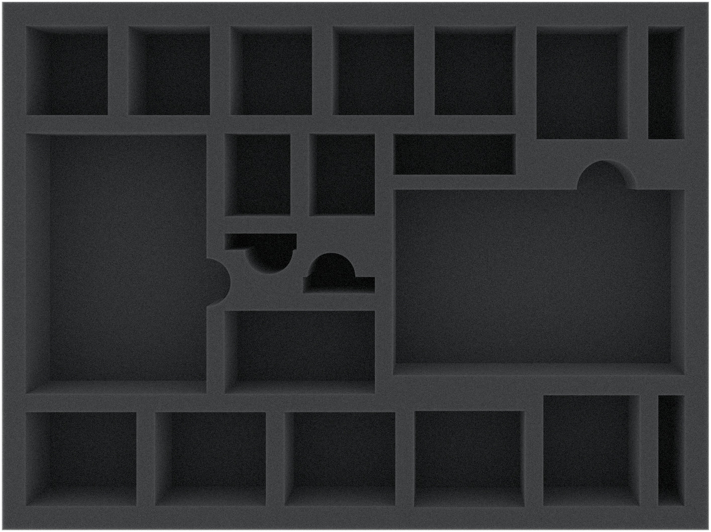 Ce plateau en mousse de 45 mm de haut est divisé en 21 compartiments. Il est particulièrement adapté au stockage en toute sécurité des figurines de table et de jeu de société, ainsi que d'autres modèles fragiles et de petites pièces.