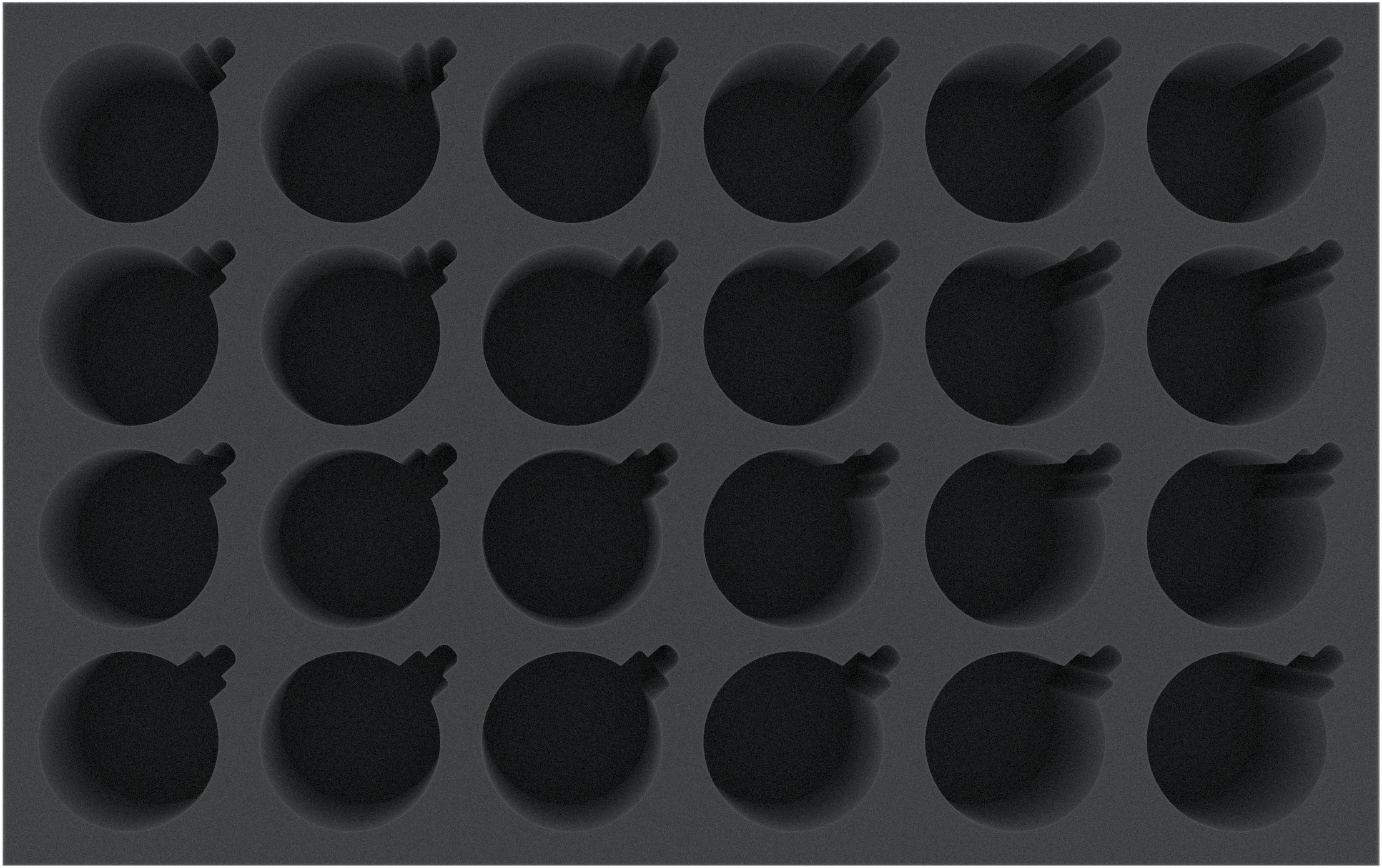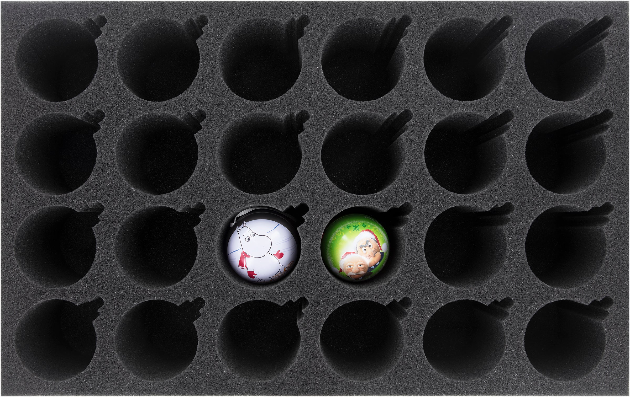 Le même problème de boules de Noël que chaque année ? En utilisant les plateaux en mousse Feldherr, les boules décoratives sensibles survivent au stockage et au transport sans être endommagées. 24 boules d'un diamètre de 70 mm trouvent chacune leur place dans la mousse souple. Même en cas de chute d'une grande hauteur, elles survivront sans problème. La prudence est donc toujours de mise lorsqu'il s'agit de les suspendre et de les retirer.