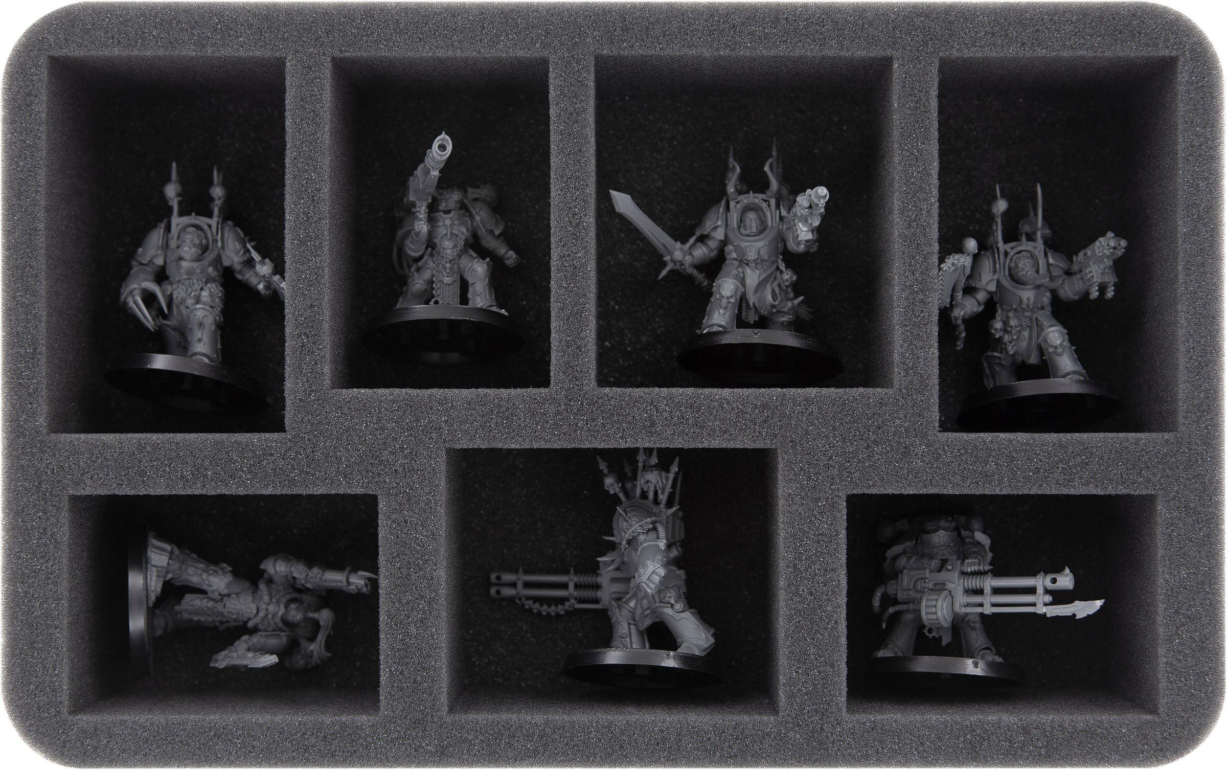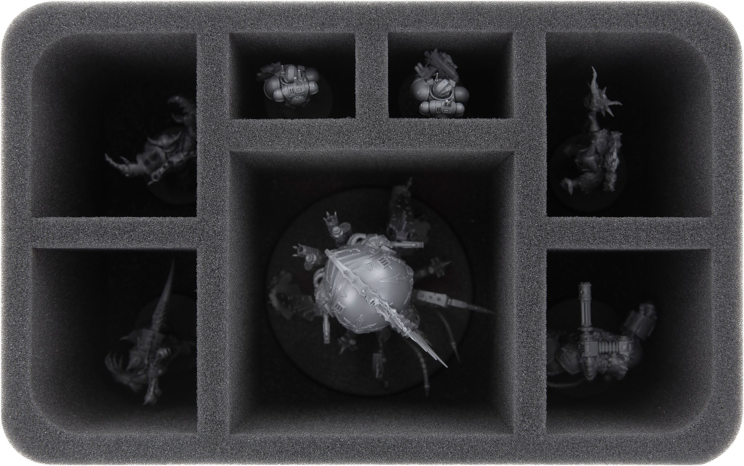 Les deux plateaux en mousse HSLZ060BO disposent chacun de sept compartiments de tailles différentes et conviennent particulièrement aux figurines encombrantes comme par exemple les Havocs ou les Terminators.