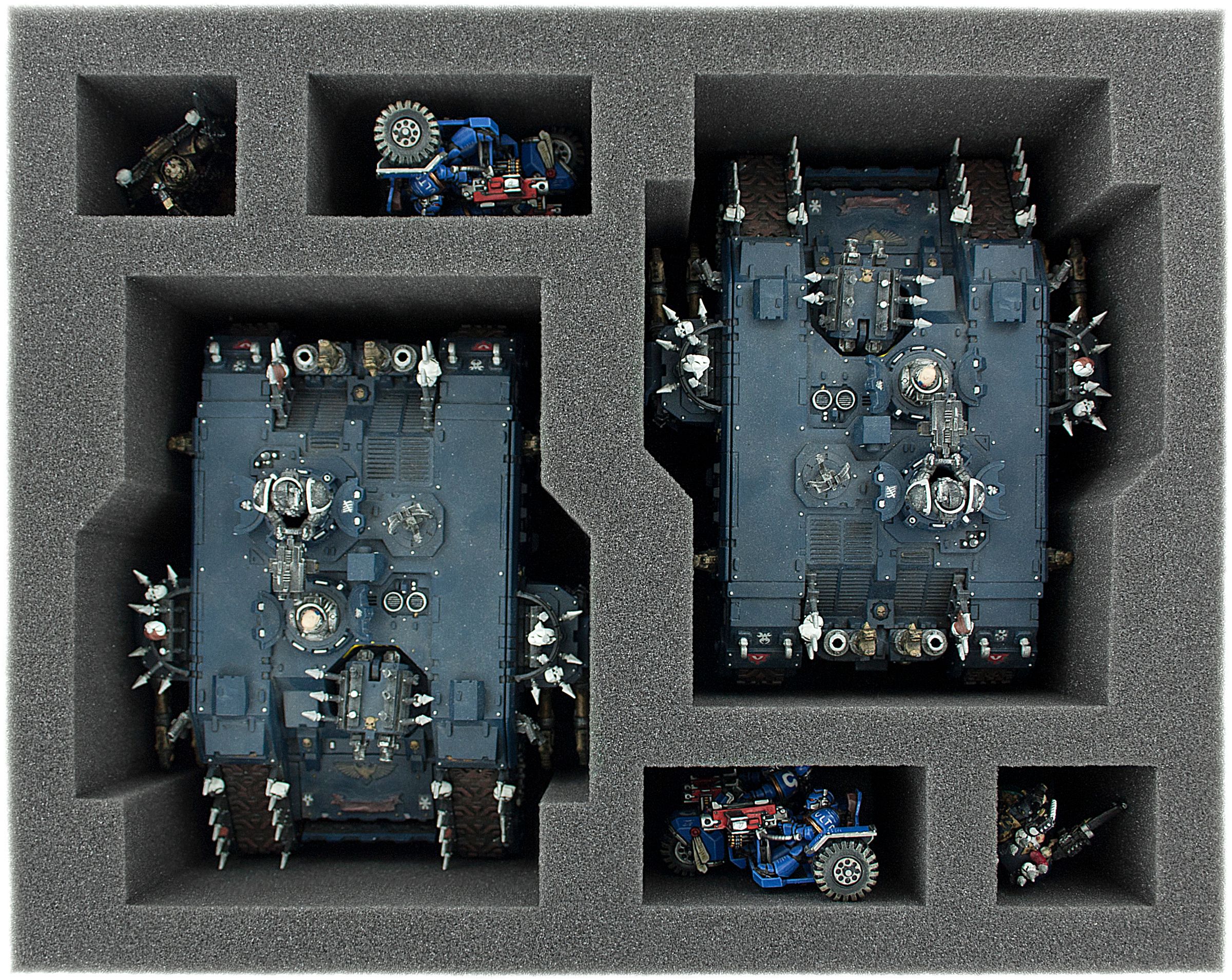 - 1 plateau en mousse avec 6 compartiments pour zwei Land Raider et quatre autres miniatures (FSBN110BO)