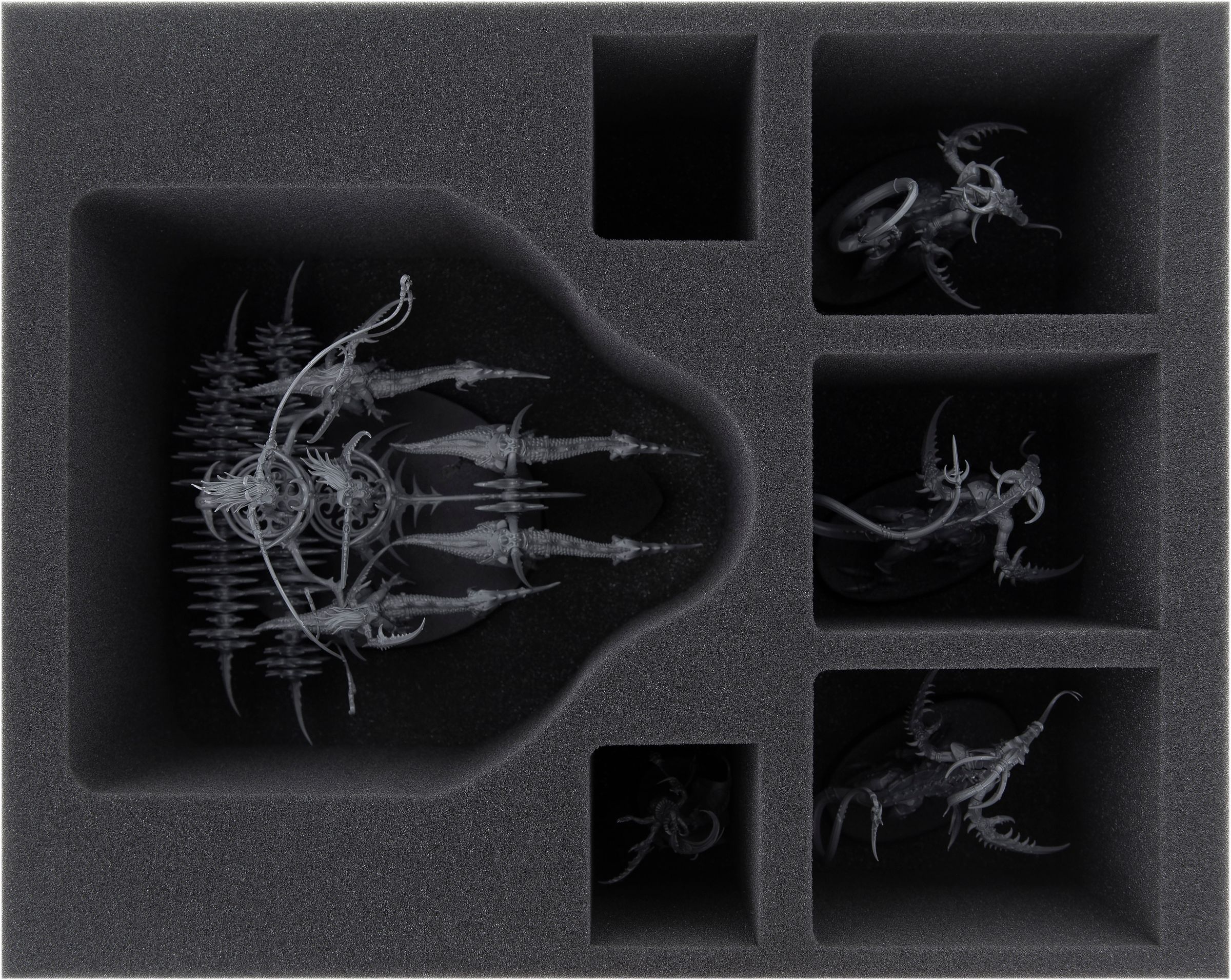 • 1 plateau en mousse Full-Size avec 6 compartiments pour le char du Seeker Exalté et 5 autres modèles Slaanesh (FSMEOL100BO)