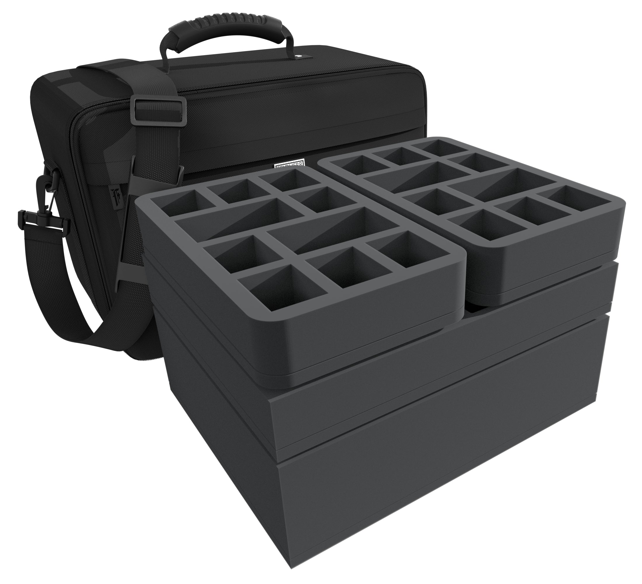 Pour vous assurer que rien n'arrive à votre armée sur le chemin de la prochaine mission, voici le sac MAXI PLUS assorti comprenant des plateaux en mousse Feldherr personnalisés pour protéger vos figurines.