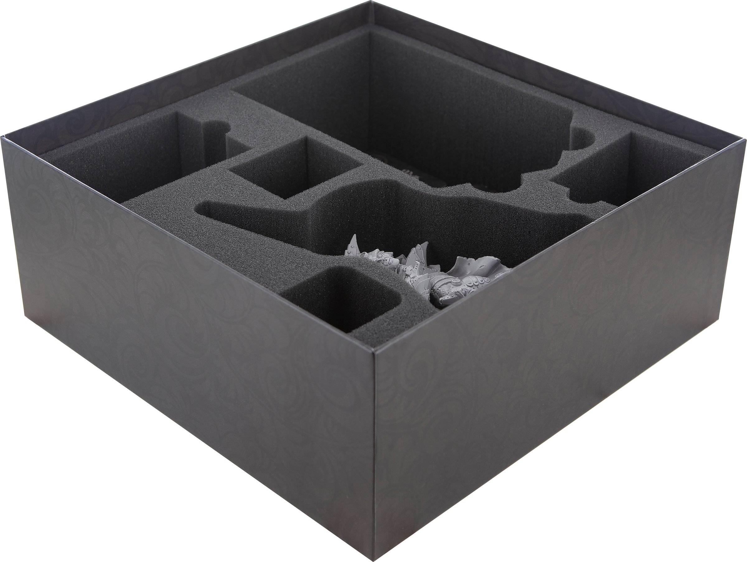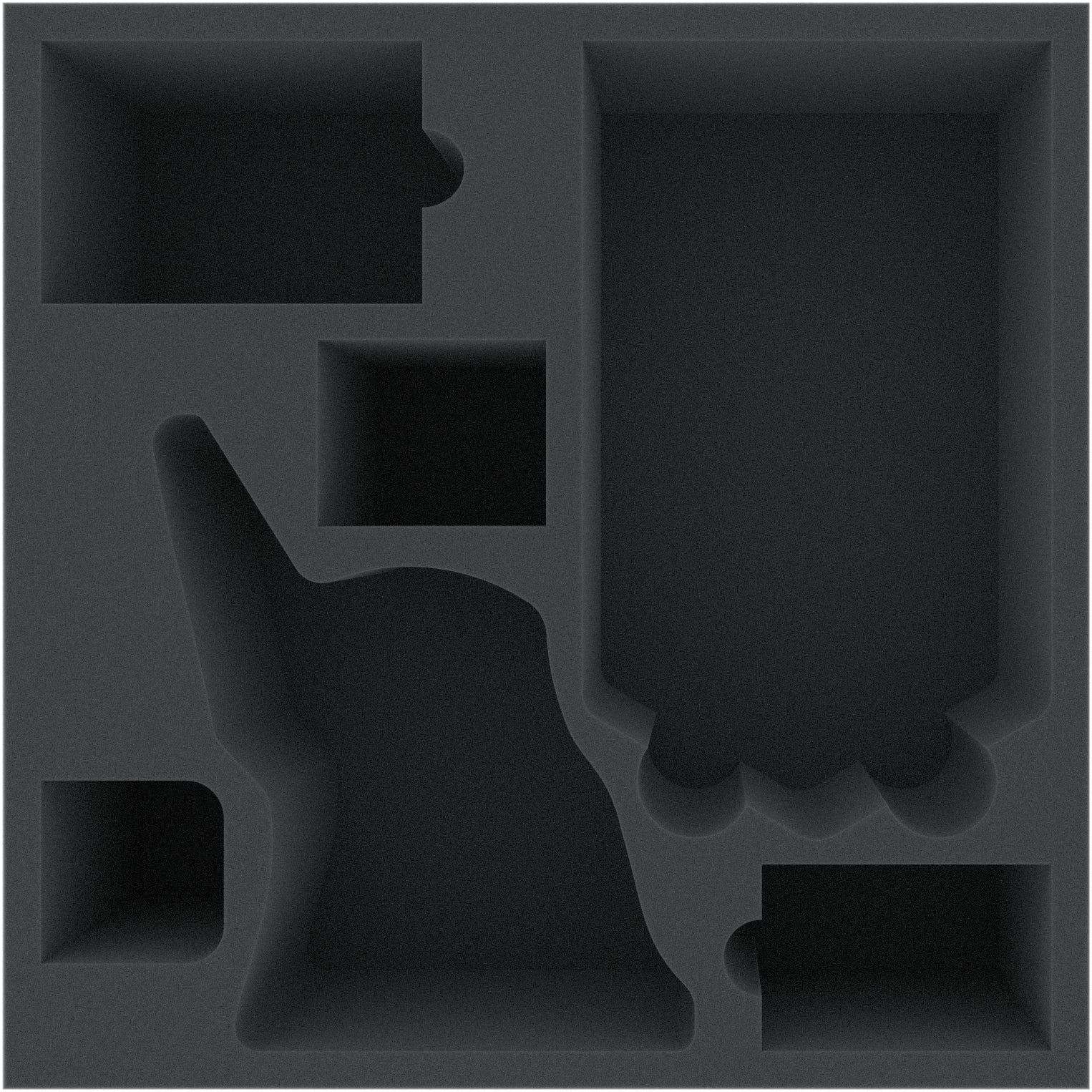 L'insert en mousse est divisé en 6 compartiments. La miniature de Crono est logée dans un grand compartiment miniature. Grâce à la coupe exacte, la silhouette reste dans sa position doucement rembourrée même pendant le transport. L'arme de Crono et les autres pièces sensibles sont mieux protégées contre les dommages.
