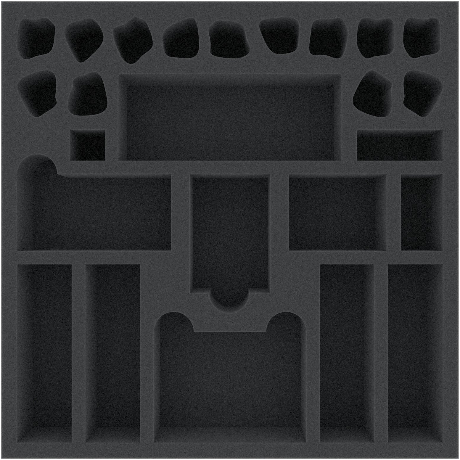 14 compartiments sur mesure sont réservés aux figurines des personnages. Il y a également un compartiment assorti pour la décoration à l'état monté. La découpe précise permet de s'assurer que rien ne glisse, même pendant le transport. Les parties et les bords sensibles des modèles sont ainsi protégés de manière optimale contre les dommages. Lorsque vous avez peint vos figurines, vous pouvez être sûr que les couleurs sont épargnées de l'abrasion et des rayures gênantes.