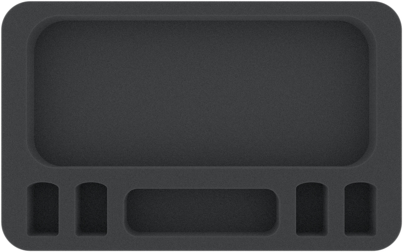 Le plateau en mousse a les dimensions : 275 mm x 172 mm x 35 mm hauteur totale (25 mm hauteur utile + 10 mm base en mousse).