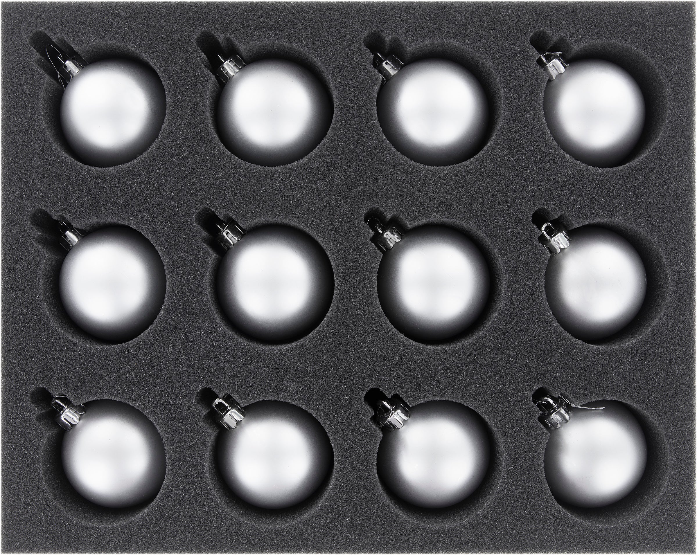 Le même problème de boules de Noël que chaque année ? En utilisant les plateaux en mousse Feldherr, les boules décoratives sensibles survivent au stockage et au transport sans être endommagées. 12 boules d'un diamètre de 60 mm chacune trouvent leur place dans la mousse souple. Même en cas de chute d'une grande hauteur, elles survivront sans problème. La prudence est donc toujours de mise lorsqu'il s'agit de les suspendre et de les retirer.