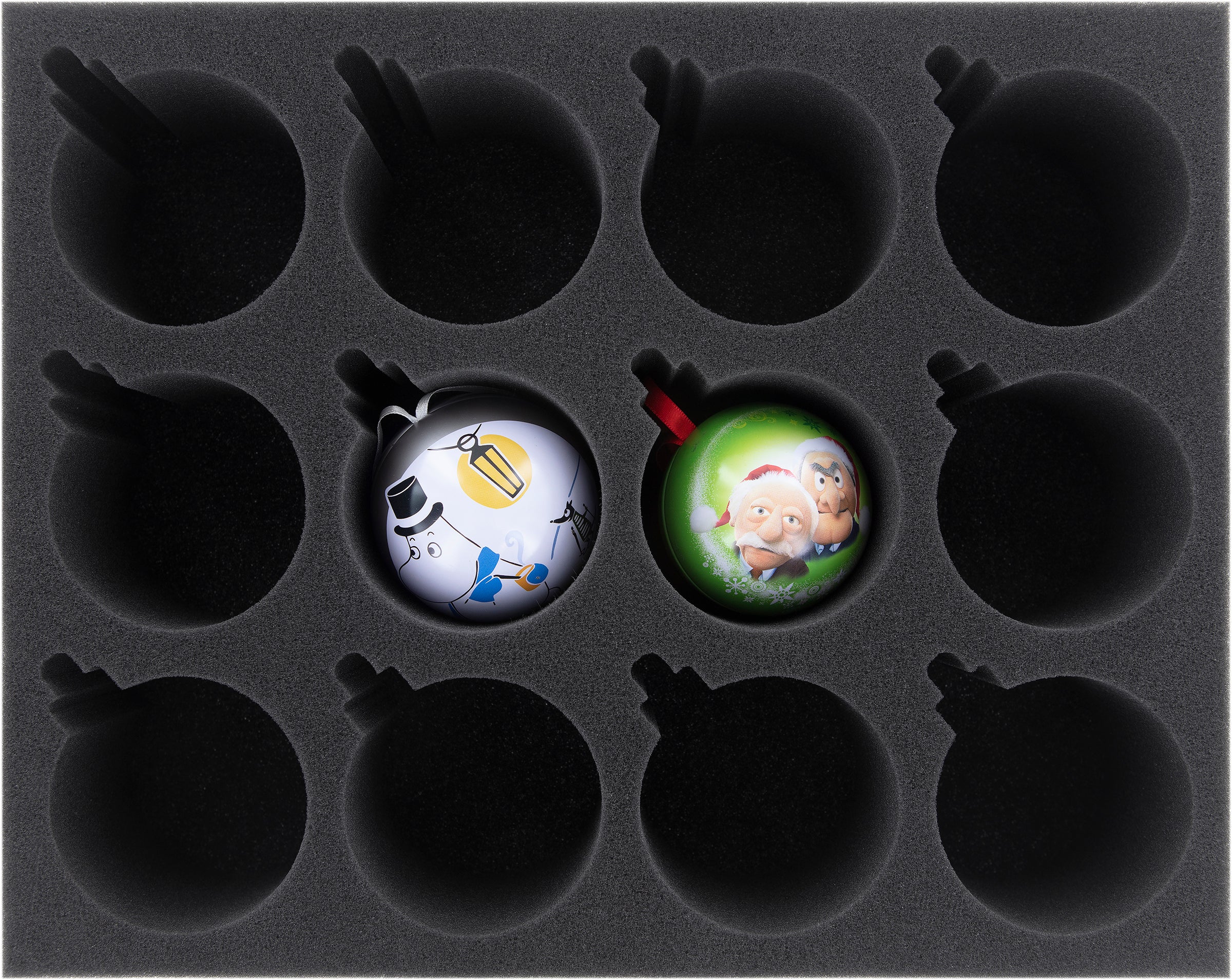 Les mêmes problèmes de boules de Noël que chaque année ? En utilisant les plateaux en mousse Feldherr, les boules décoratives sensibles survivent au stockage et au transport sans être endommagées. 12 boules d'un diamètre de 70 mm chacune trouvent leur place dans la mousse souple. Même en cas de chute d'une grande hauteur, elles survivront sans problème. La prudence est donc toujours de mise lorsqu'il s'agit de les suspendre et de les retirer.