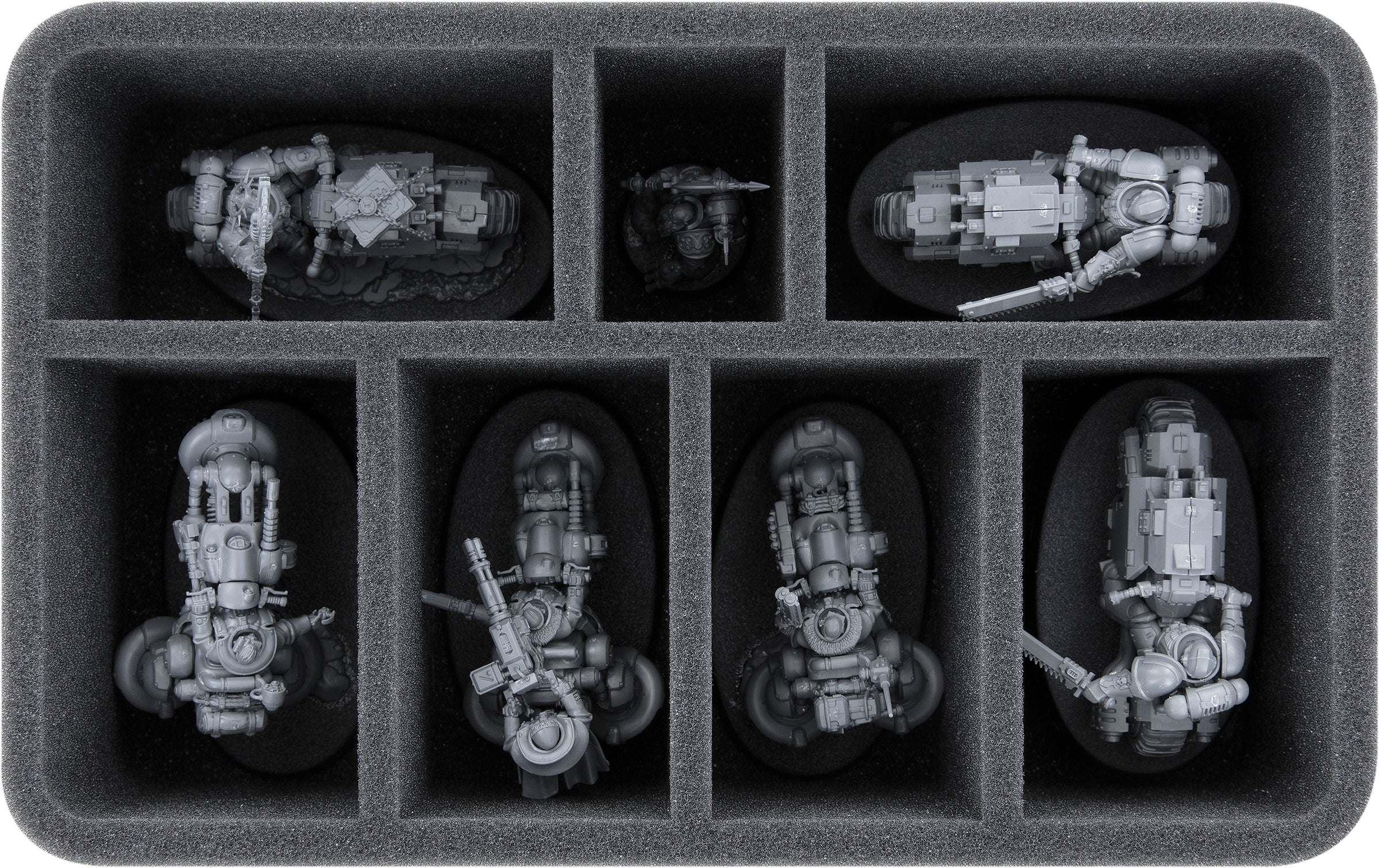 • 1 Half-Size mousses de rangement avec 7 compartiments pour la cavalerie comme les Hernkyn Pioneers ou des modèles de dimensions similaires (HS080A017).