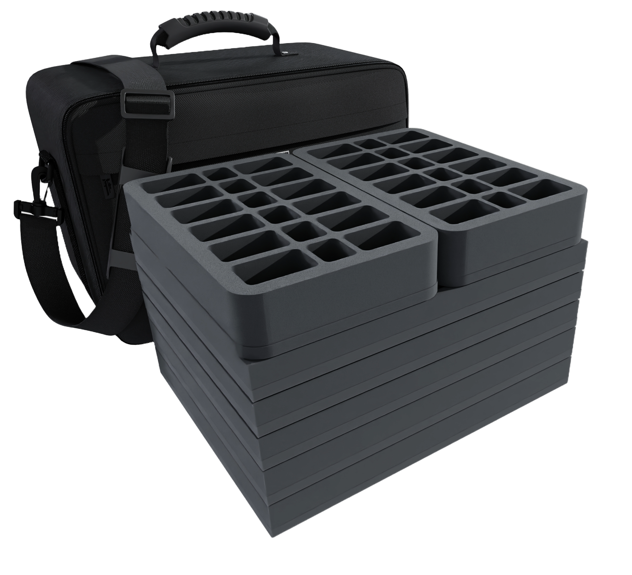 • 2 Full-Size mousses de rangement avec 25 compartiments chacun, pour des figurines de table de 20 mm volumineuses comme les Templiers, les canons de la Garde Impériale Française et figurines de dimensions similaires (FS035A030)