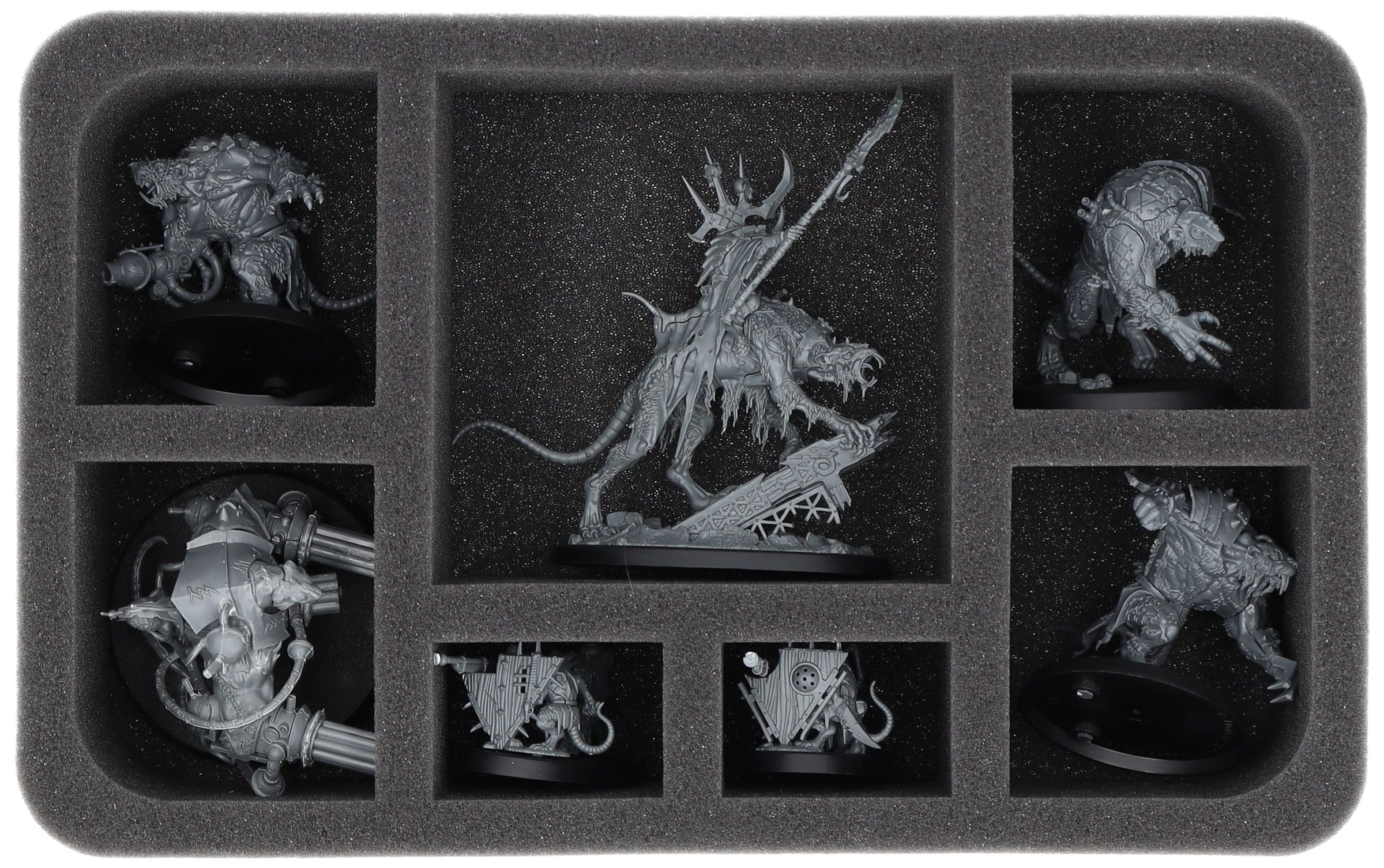 - 1 plateau en mousse de taille normale avec 34 compartiments pour des figurines comme les Clanrats et des modèles de taille similaire (FS040A043)