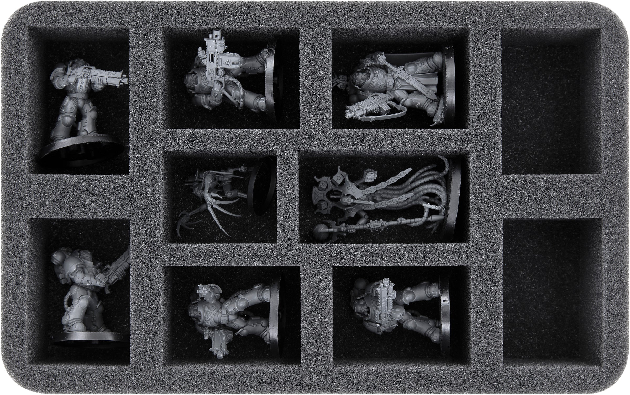 - 1 plateau en mousse Half-Size pour 1 Capitaine Space Marine et 5 Intercesseurs Lourds + Chronomancien et 1 Écorché (HSLM050BO)