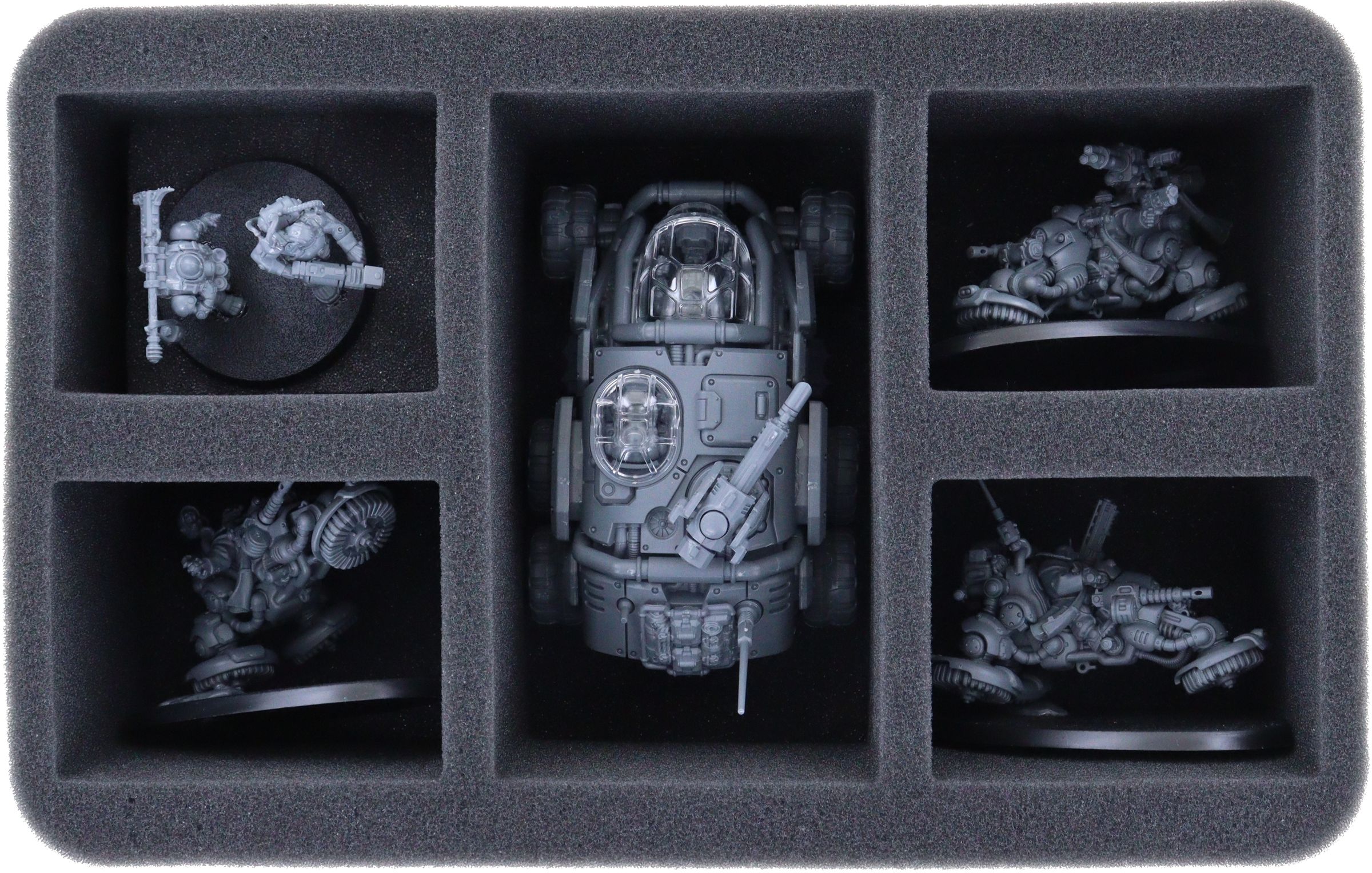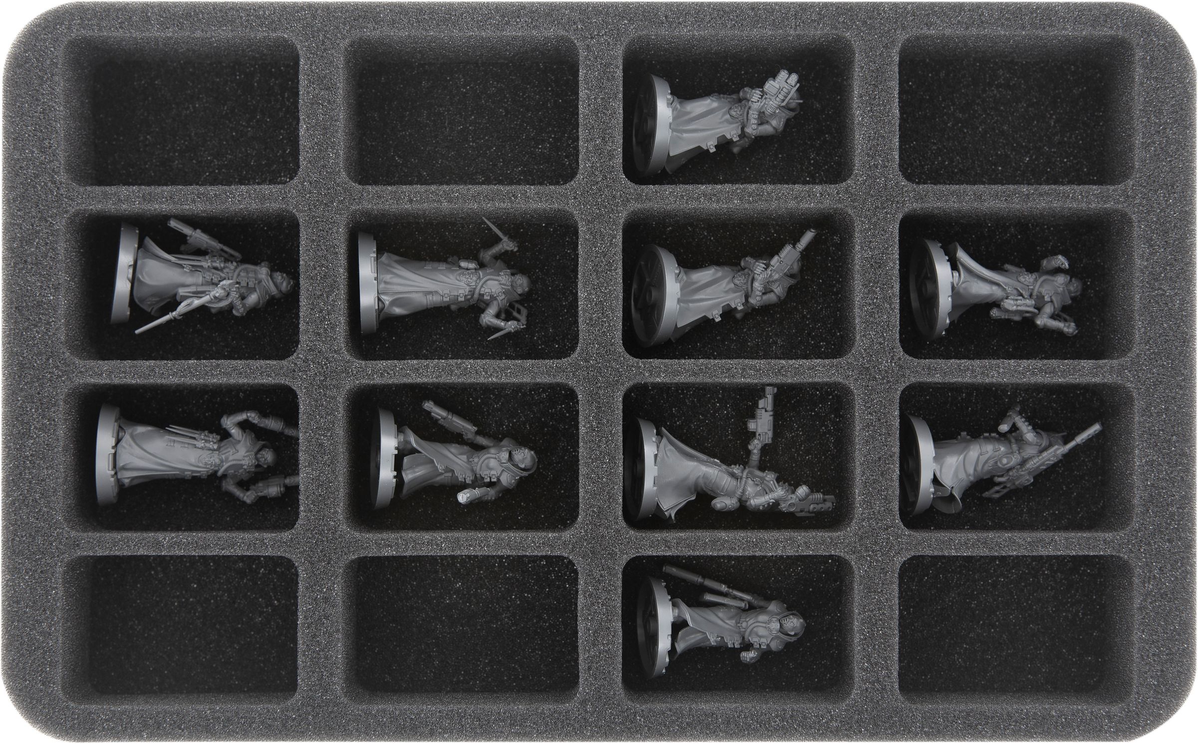 Chaque figurine de votre collection reçoit ici son propre compartiment personnalisé. Ainsi, vos modèles restent bien en place pendant le transport. La mousse souple protège les parties sensibles de vos figurines et les couleurs de la figurines peinte sont tout aussi à l'abri de l'abrasion et des rayures.