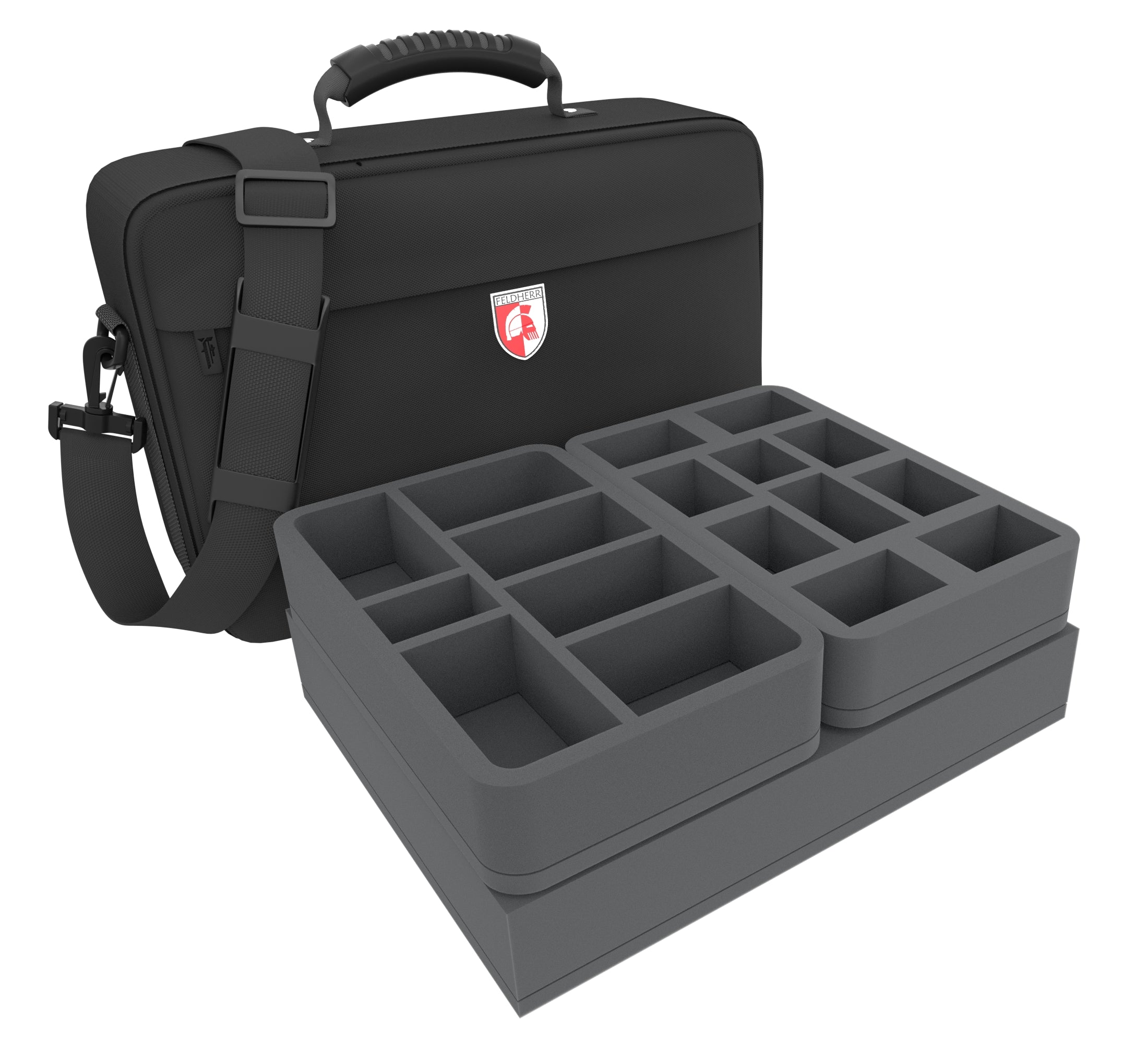 Nous avons la solution idéale pour transporter vos modèles en toute sécurité ! Notre Feldherr sac a des inserts en mousse personnalisés qui protègent l'armure et les armes de vos figurines contre les rayures et les dommages. Vous pouvez stocker et transporter vos modèles sans souci avec le sac MEDIUM rempli de mousse.