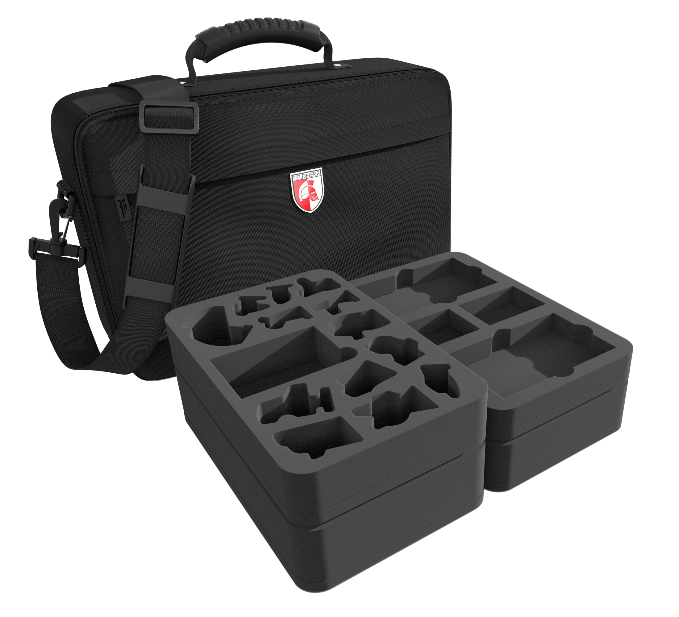 Pour s'assurer que les 18 figurines et tous les accessoires arrivent à bon port et en toute sécurité au prochain jeu, nous vous proposons ce sac MEDIUM confortable, rempli de tous les inserts Feldherr pour les trois premiers'Warhammer Quest : Agrandissement de la forteresse de Blackstone.