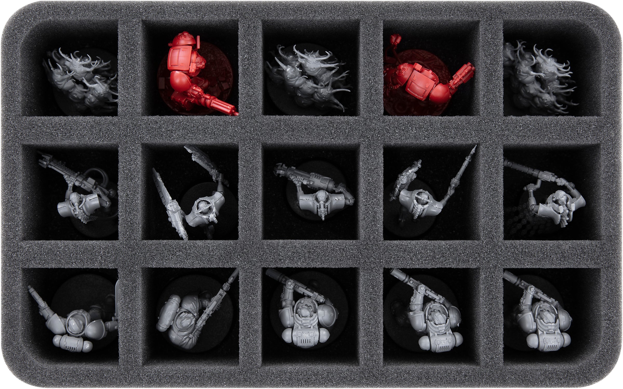 - 1 Half-Size mousses de rangement avec 15 compartiments pour l'infanterie standard comme les Primaris Infiltrators, Eliminators, Primaris Lieutenant et les modèles de dimensions similaires (HS060A040)