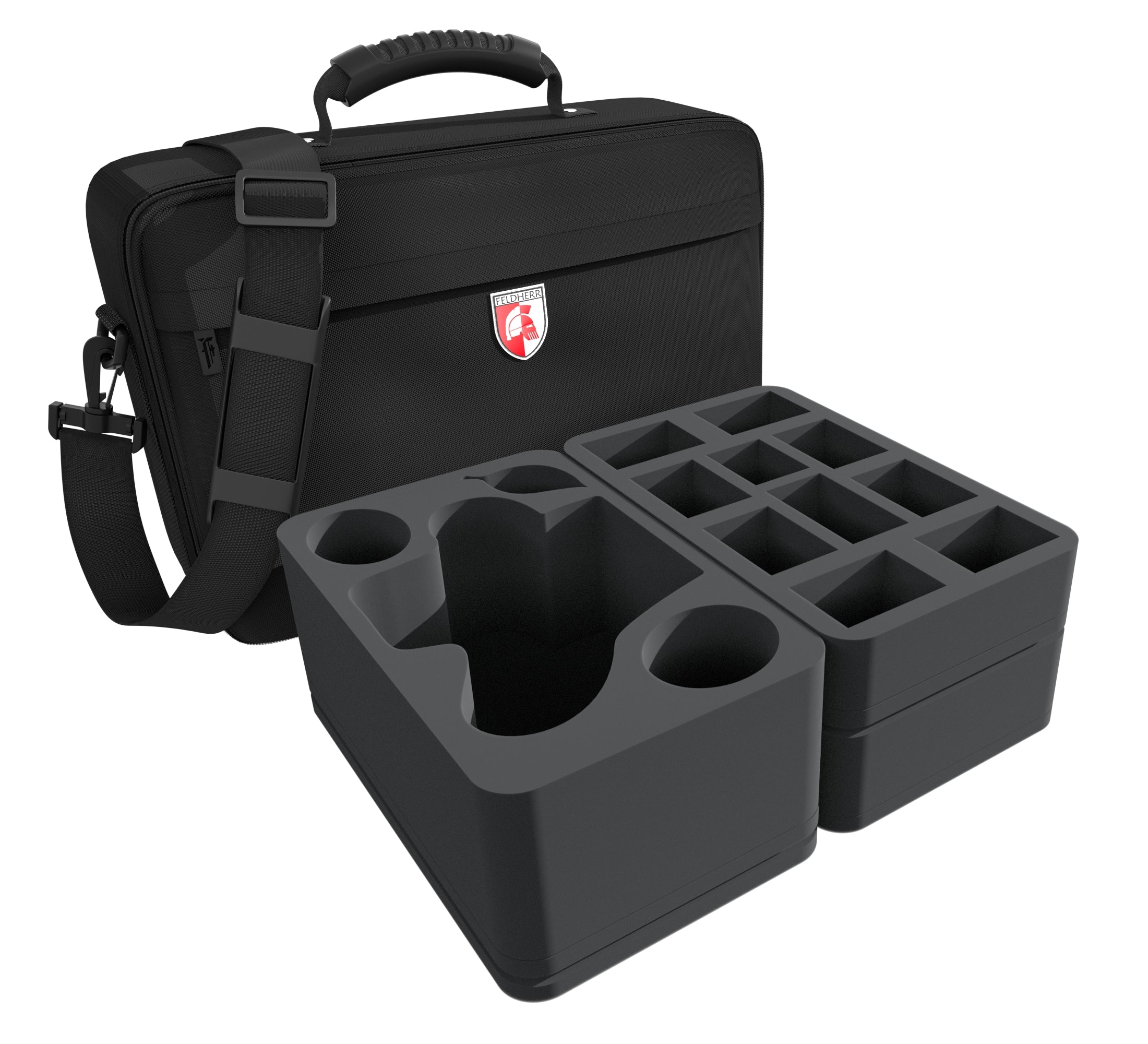 Pour vous assurer que rien n'arrive à votre armée sur le chemin de la prochaine mission, voici le sac MEDIUM assorti comprenant des plateaux en mousse Feldherr personnalisés pour protéger vos figurines.