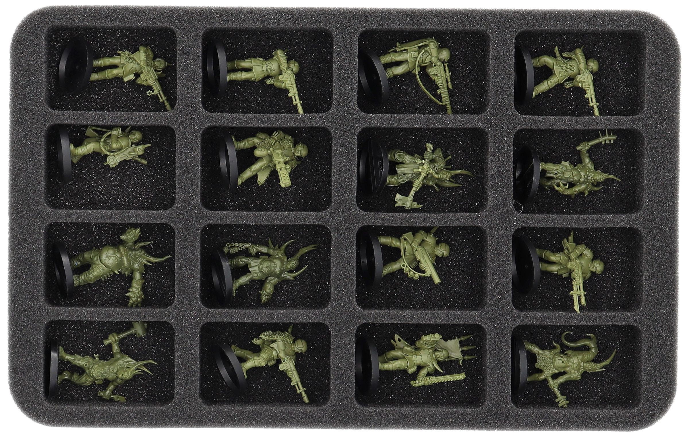 • 1 plateau en mousse de taille moyenne avec 16 compartiments pour les figurines telles que les marcheurs de la variole, les gardes traîtres et les figurines de taille similaire (HS035BF05BO)
