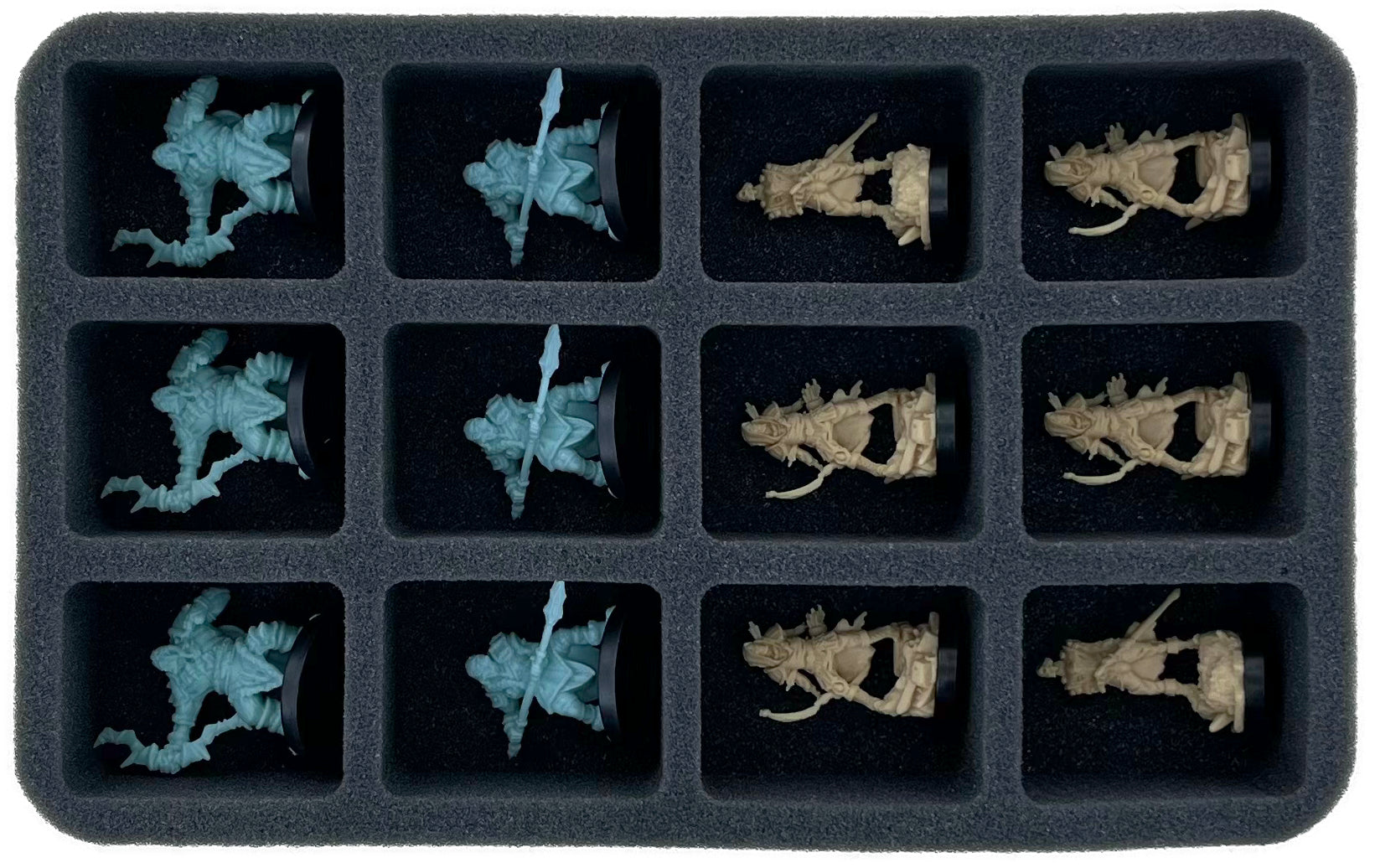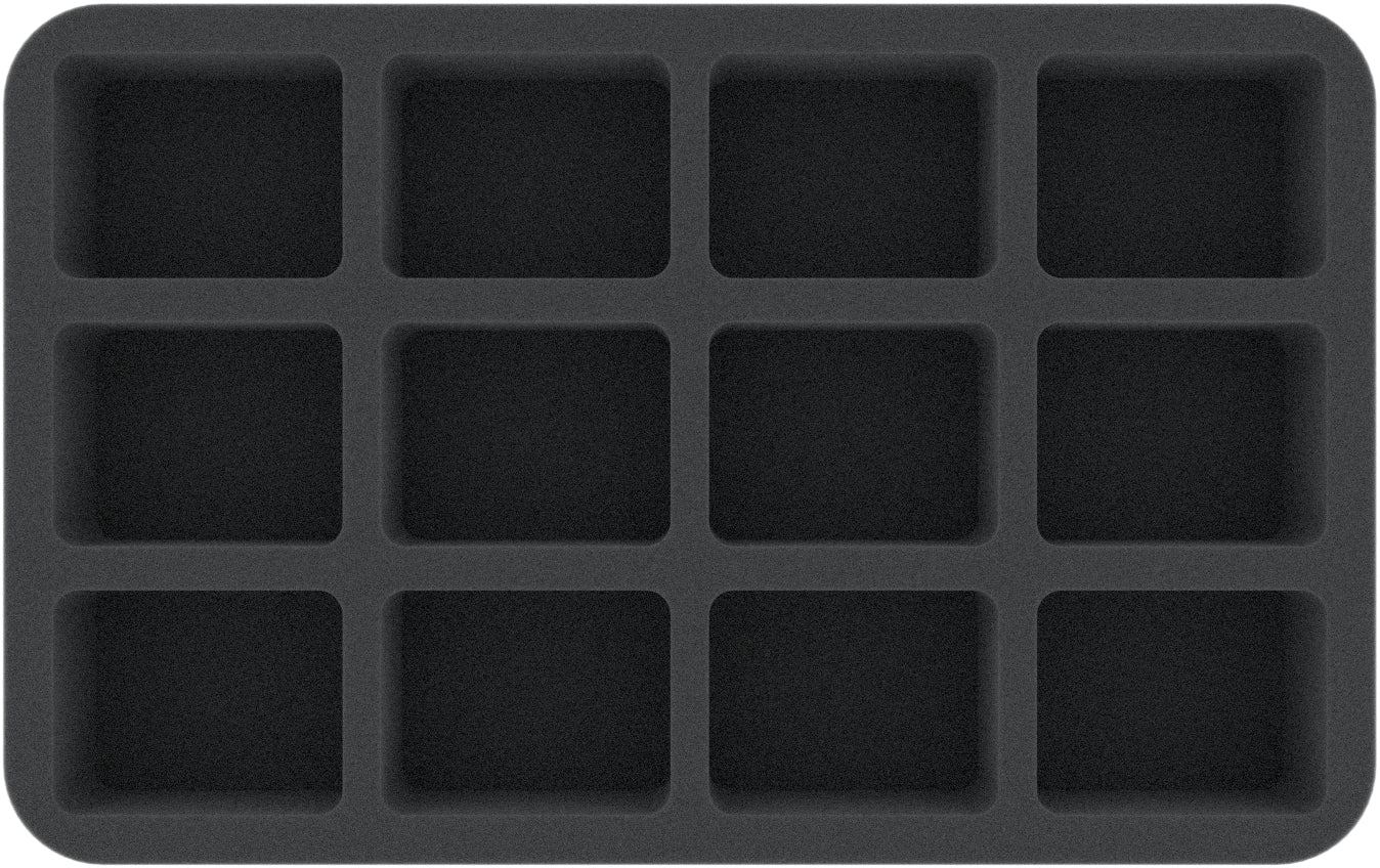 • 1 Half-Size mousses de rangement avec 12 compartiments pour les modèles d'infanterie comme l'Orque Grimfang, l'Archer Squelette et le Roi des Orques (HSMFEN050BO).