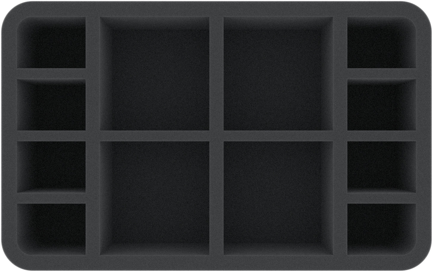 • 1 Half-Size mousses de rangement avec 12 compartiments pour les modèles d'infanterie comme les Ironskull Deathriders, Ice Shelf Polar Bears et Orc King (HSMFAA070BO)