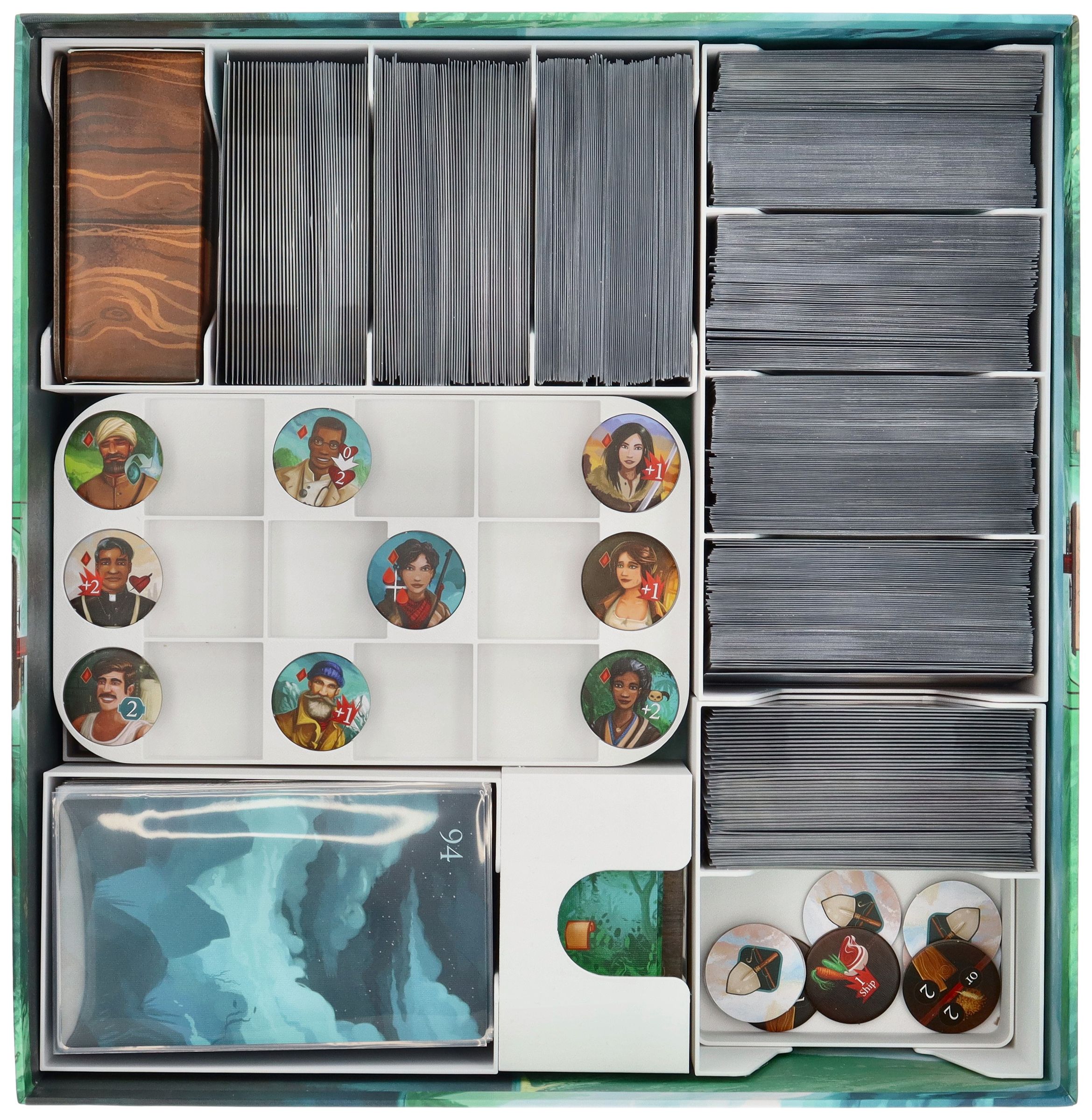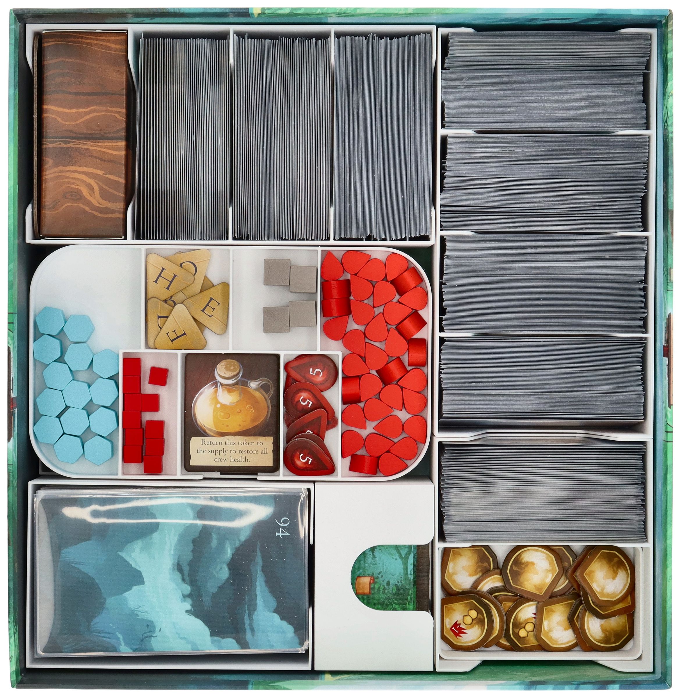 - Les inserts amovibles individuellement pour les ressources et les cartes permettent à vos accessoires de passer de la boîte au plateau de jeu, améliorant ainsi votre expérience de jeu.