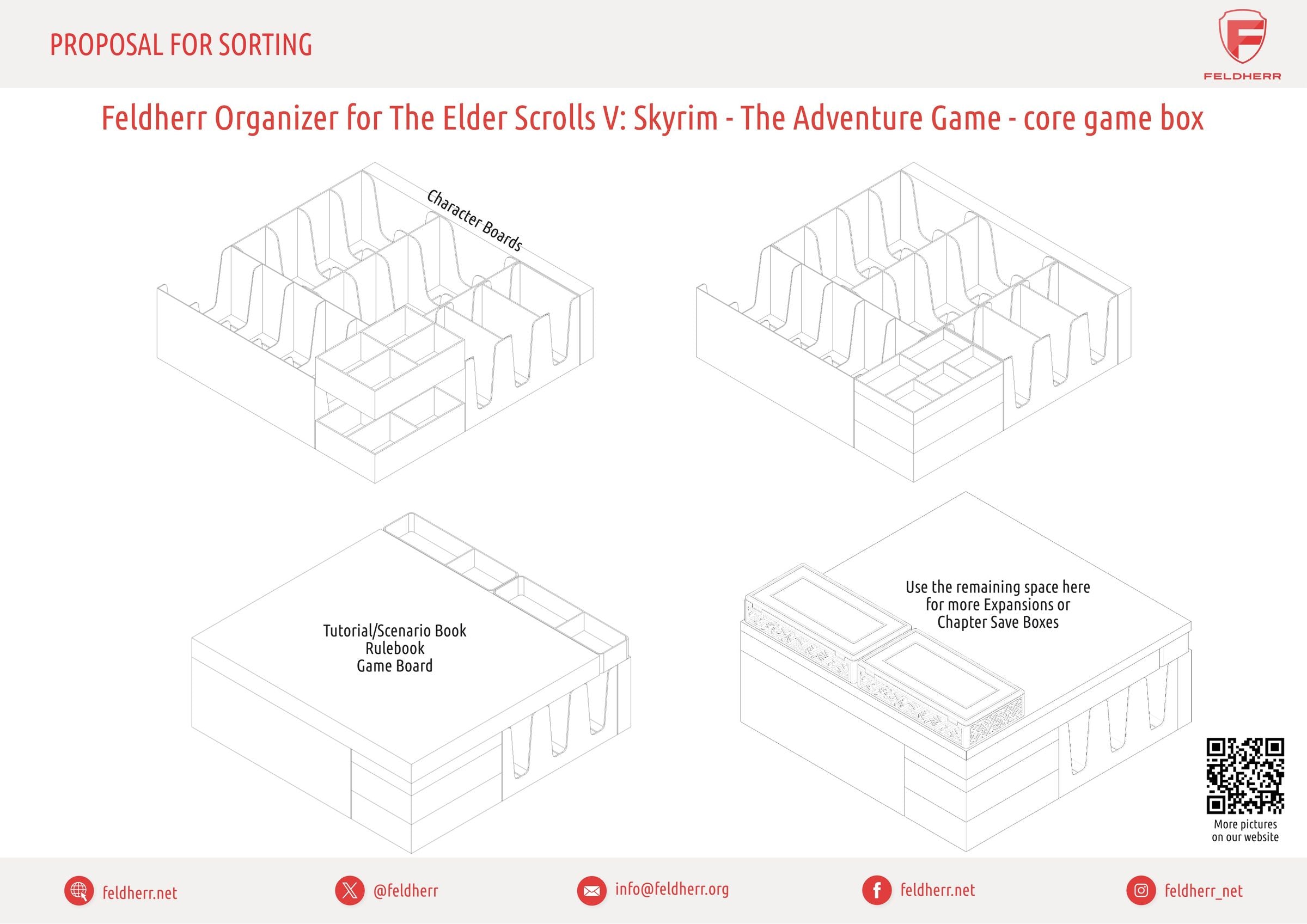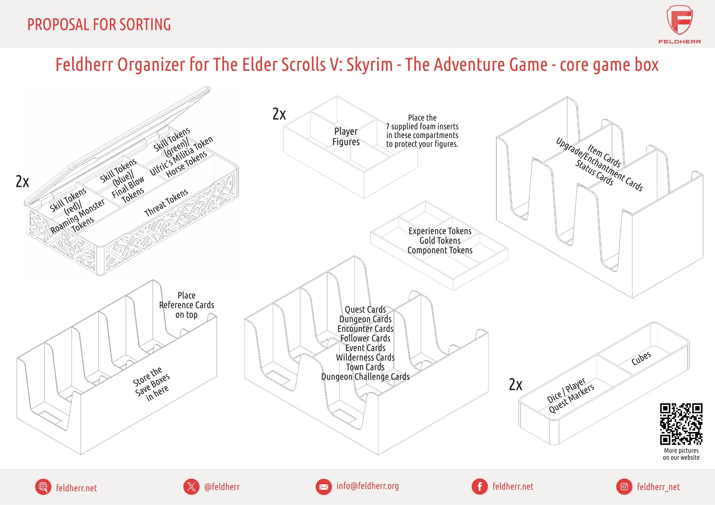 - L'organiseur s'adapte parfaitement à la boîte de jeu de plateau originale du jeu de base "The Elder Scrolls V : Skyrim - The Adventure Game" (dimensions de l'organiseur : 288 x 272 x 141 mm).