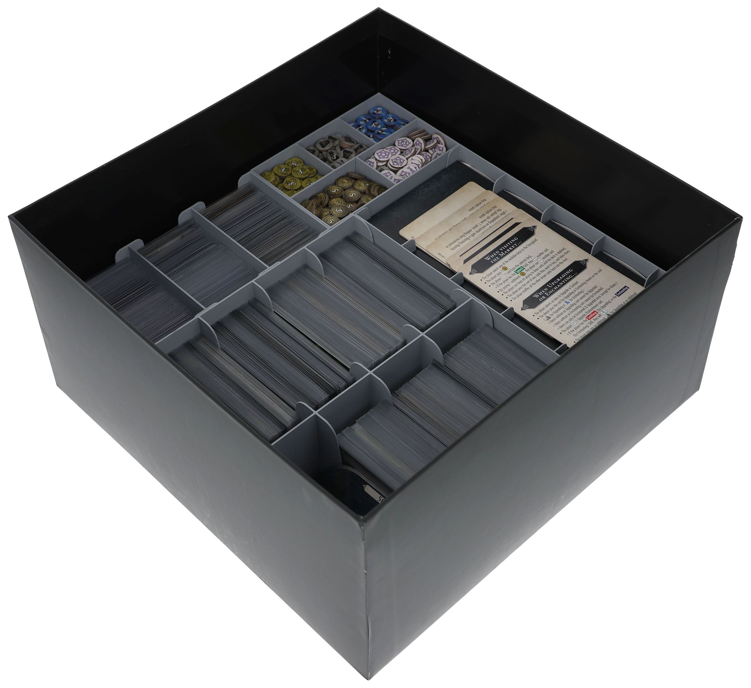 Customised board game organisers and practical game aids bring order to your box and gaming table – quickly becoming an indispensable upgrade for your game collection.