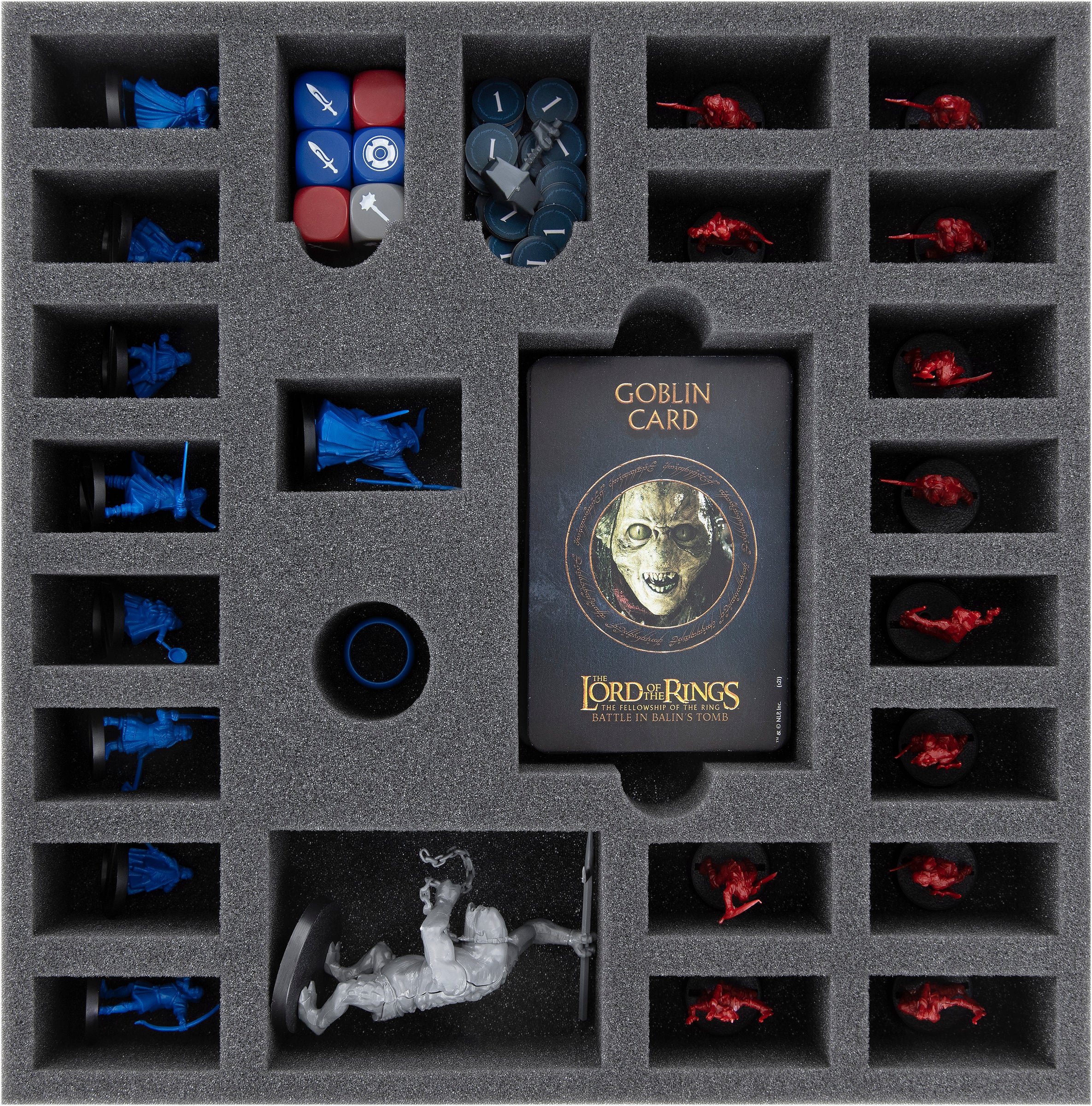 - Il offre de la place pour les neuf figurines de héros et les treize figurines d'ennemis, ainsi que pour le matériel de jeu complet de "Le Seigneur des Anneaux : La Communauté de l'Anneau - La Bataille de la Tombe de Balin".